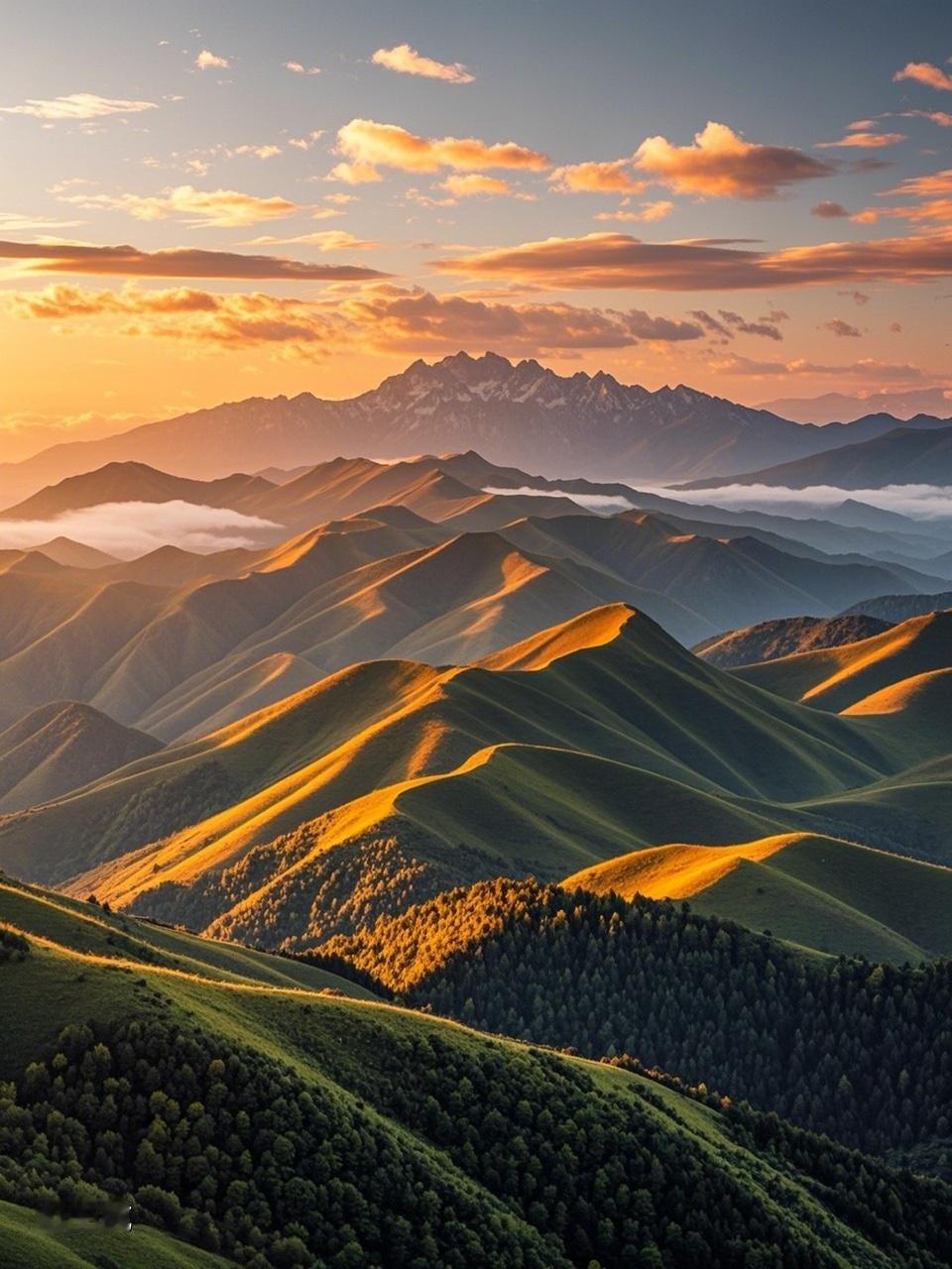 “千山迎落日”,这画面感绝了,连绵群山迎接落日,那场景要多壮观有多壮观。要接下半句,“万水送归帆”就很妙。想象一下,千山那边落日西沉,万水这边归帆远去,画面和谐又有意境。还有“万壑纳归云”也不错,千山迎落日是壮美,万壑纳归云就是一种包容和慈悲。千山与万壑对应,落日和归云呼应,仿佛天地间的一切都有了归宿。要是晨霞相关的,“晨霞映江天”,早晨的霞光映照在江面上,和前面的落日又形成了一种时间上的轮回,韵味十足。