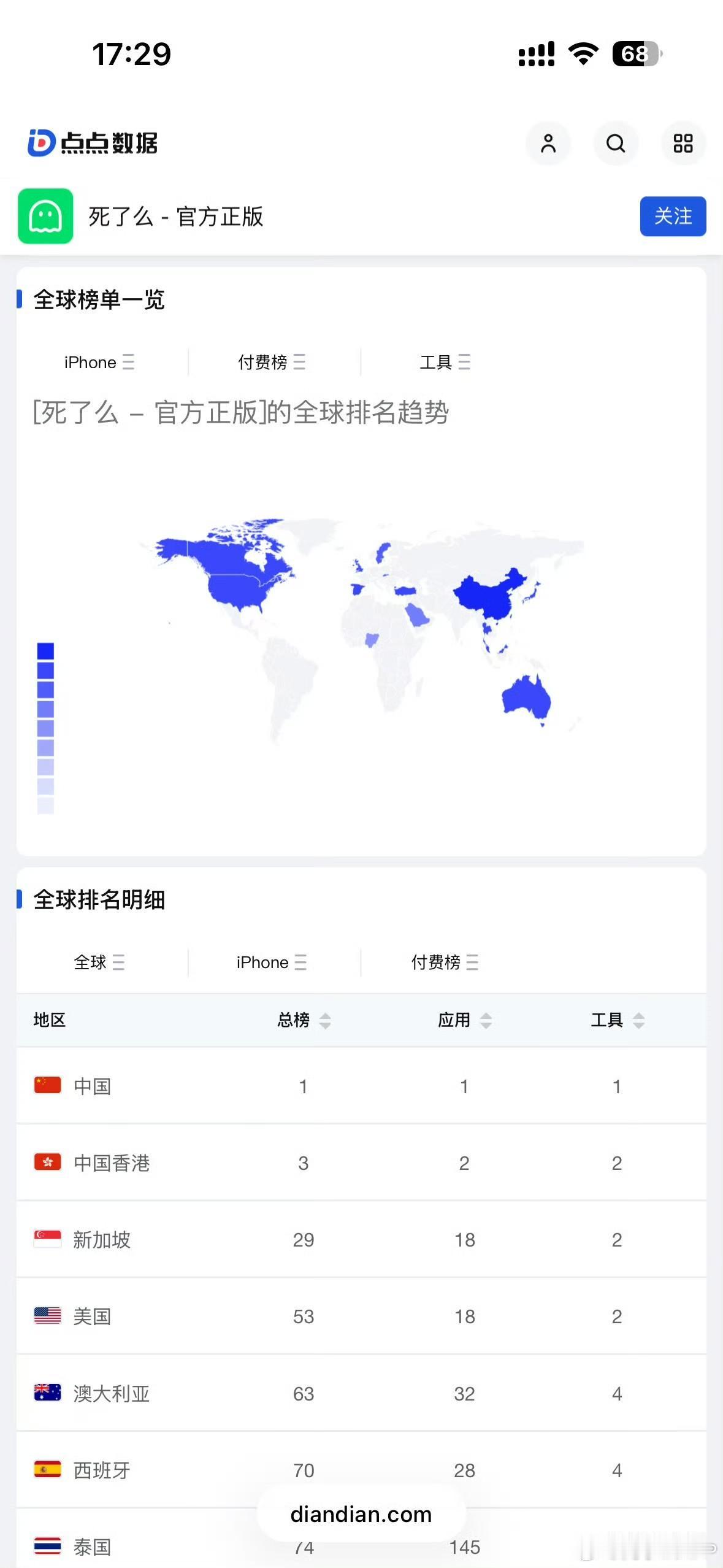 死了么App回应登顶AppStore:年轻人是服务重点! 谁都没有想到,这个看起来不怎么正经的软件,现在火得很正经! 这个付费的App静悄悄地登顶了这几天苹果付费下载的榜首,所以在今天凌晨,这个App对大家的关注表示了感谢。 从他们后台的即时排名来看,这个软件居然在全球许多地方都有下载的排名,没想到他现在不仅仅只是在我们大陆这边比较火,在香港也挺不错,甚至在在新加坡和美国都还可以。 这个前期投入1000块钱的小软件,现在成为了2026年的头一批黑马,看来接下来他们要把这个软件优化得更加的好用,但是目前看来这个老板应该还没有飘,毕竟现在才是刚刚开始,等他的用户数量更多之后,看他能不能能够扛得住。 除了自身的发展之外,还有同行的加入,毕竟这个东西他的技术难度应该不是很大,就看看能不能够做出同行们都做不到的功能。
