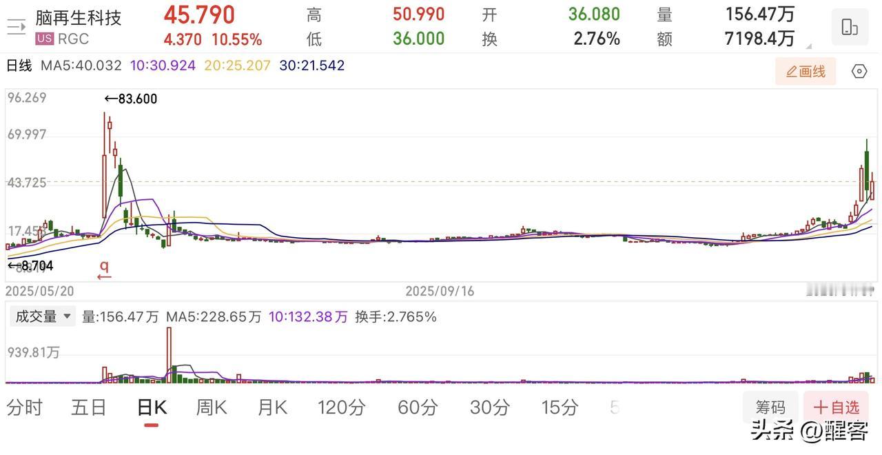 这就是全球脑机接口第一股的炒作方式,目前该领域科技的发展是否如马斯克神吹的样子,落地需要时间和临床试验。一年前炒作一波狂涨狂跌,然后横盘一年,之后再来一波三天涨三倍,后面两天跌80%,然后再开启慢慢横盘之路。 细数这家脑机接口公司今年几天跌涨跌幅:第一天涨31.65%、第二天涨22.15%、第三天涨60.10%、第四天价格从34到69波动幅度100%以跌21.69%收盘、第五天低开高走盘中剧烈震动收盘涨10.55%。