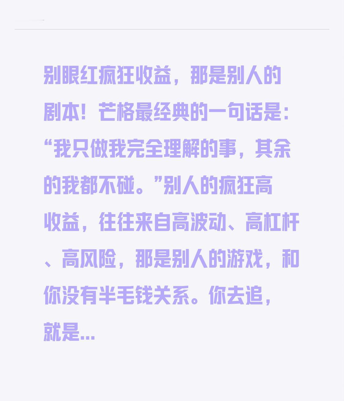 别眼红疯狂收益,那是别人的剧本! 芒格最经典的一句话是:“我只做我完全理解的事,其余的我都不碰。” 别人的疯狂高收益,往往来自高波动、高杠杆、高风险,那是别人的游戏,和你没有半毛钱关系。你去追,就是把自己的钱送进别人的剧本里。 真正属于普通人的财富,永远来自看得懂、拿得住、睡得着的公司。比如长江电力,稳稳的水电现金流,每年分红像发工资;中国神华,煤电化运一体化,行业再波动它也能赚钱;中国移动,数字基建的“水电煤”,分红大方。 这些公司不会让你一夜暴富,但能让你慢慢变富。你眼红的高收益,是烟花;你能拿住的稳定收益,才是灯塔。