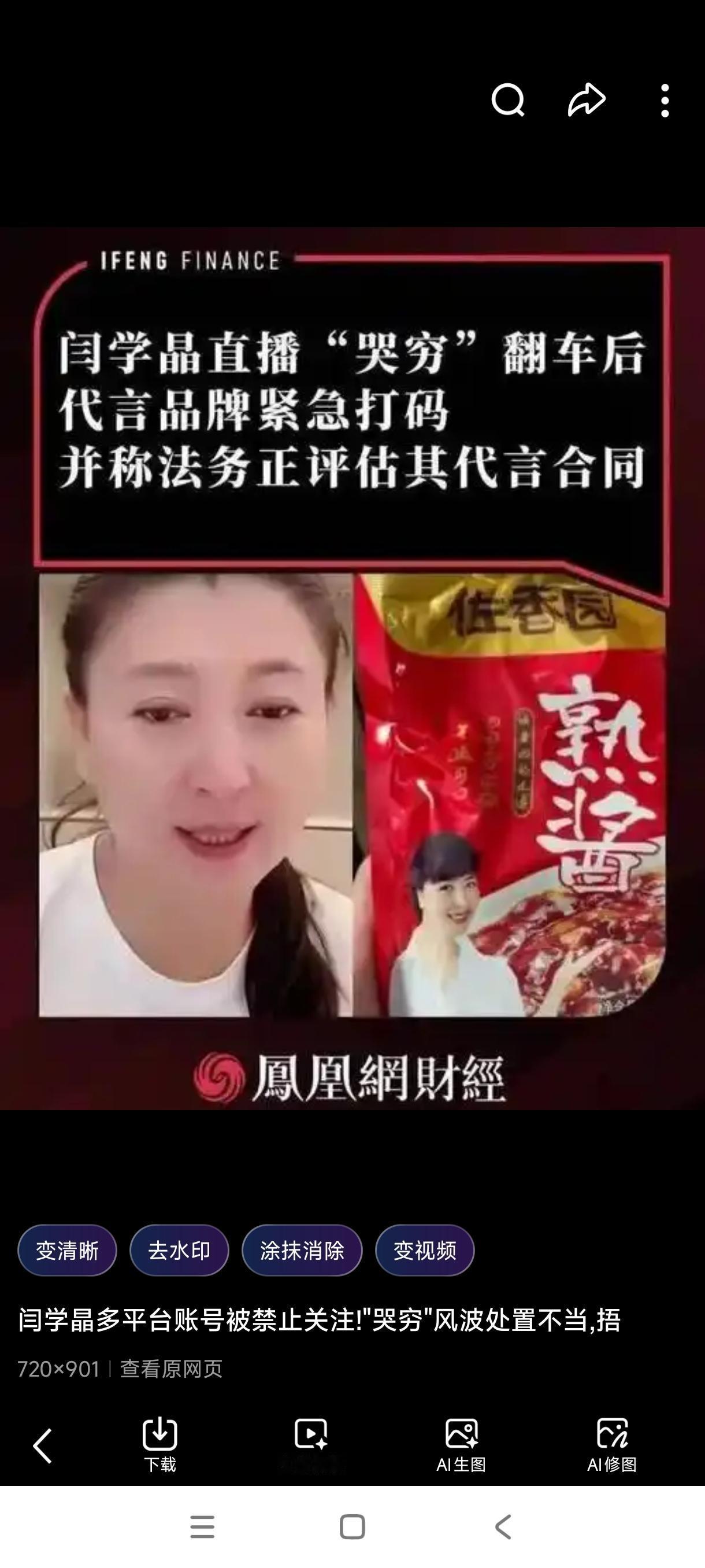 近日,演员闫学晶在直播中谈及儿子的收入时称,其拍一部戏的片酬可达几十万元,但依然“不够养家”。该言论迅速引发广泛争议,许多网友质疑她是否在“哭穷”,并指出这一收入水平已远超普通家庭。 随着舆论持续发酵,闫学晶的多个社交平台账号随后被禁止关注。此事进一步激起网络热议,公众围绕演员收入、行业生态与公众人物言论责任等问题展开讨论。目前,相关平台尚未对封禁原因作出具体说明。闫学晶 闫学晶直播带货靠谱吗 闫学晶直播间哭穷