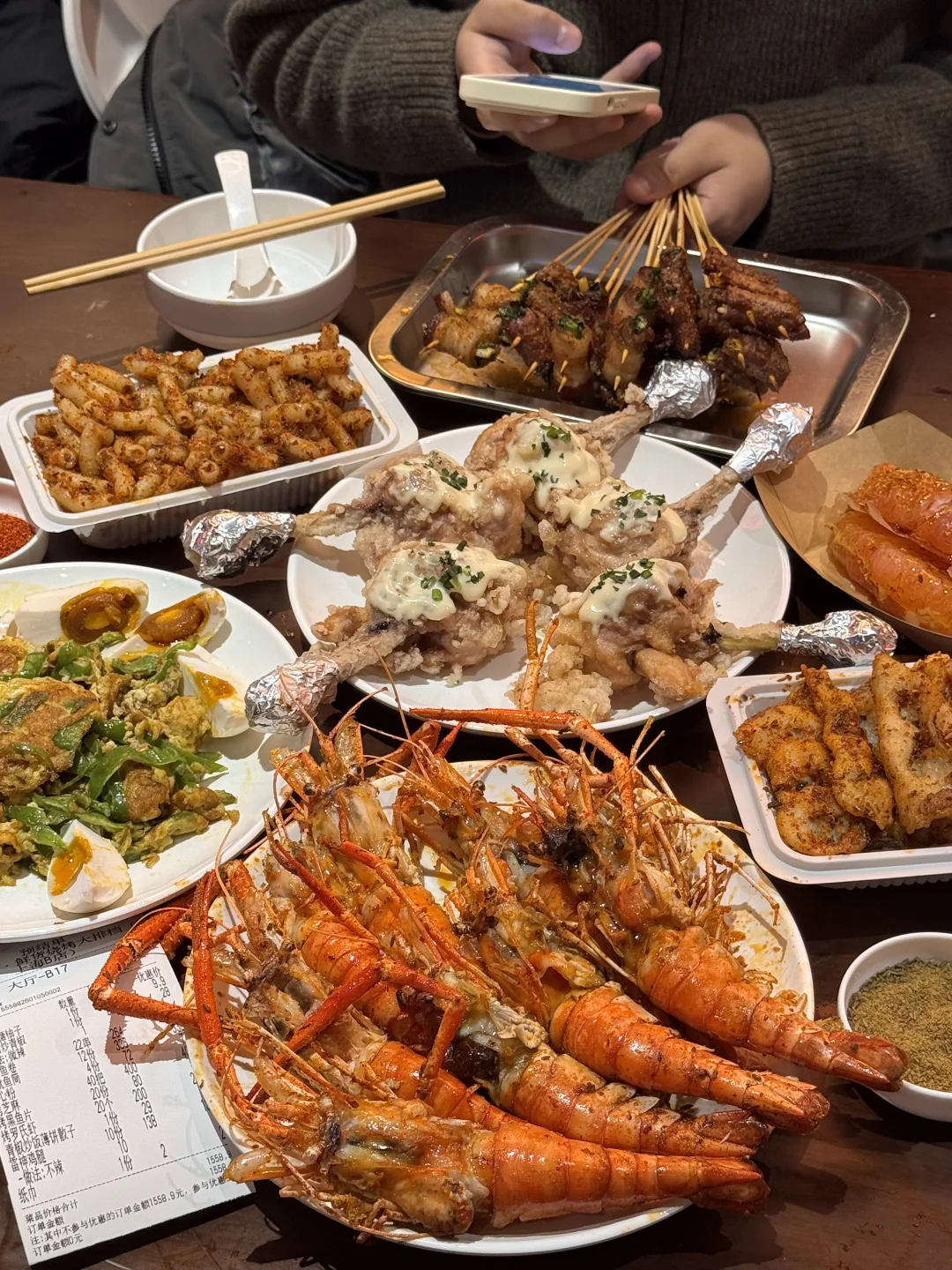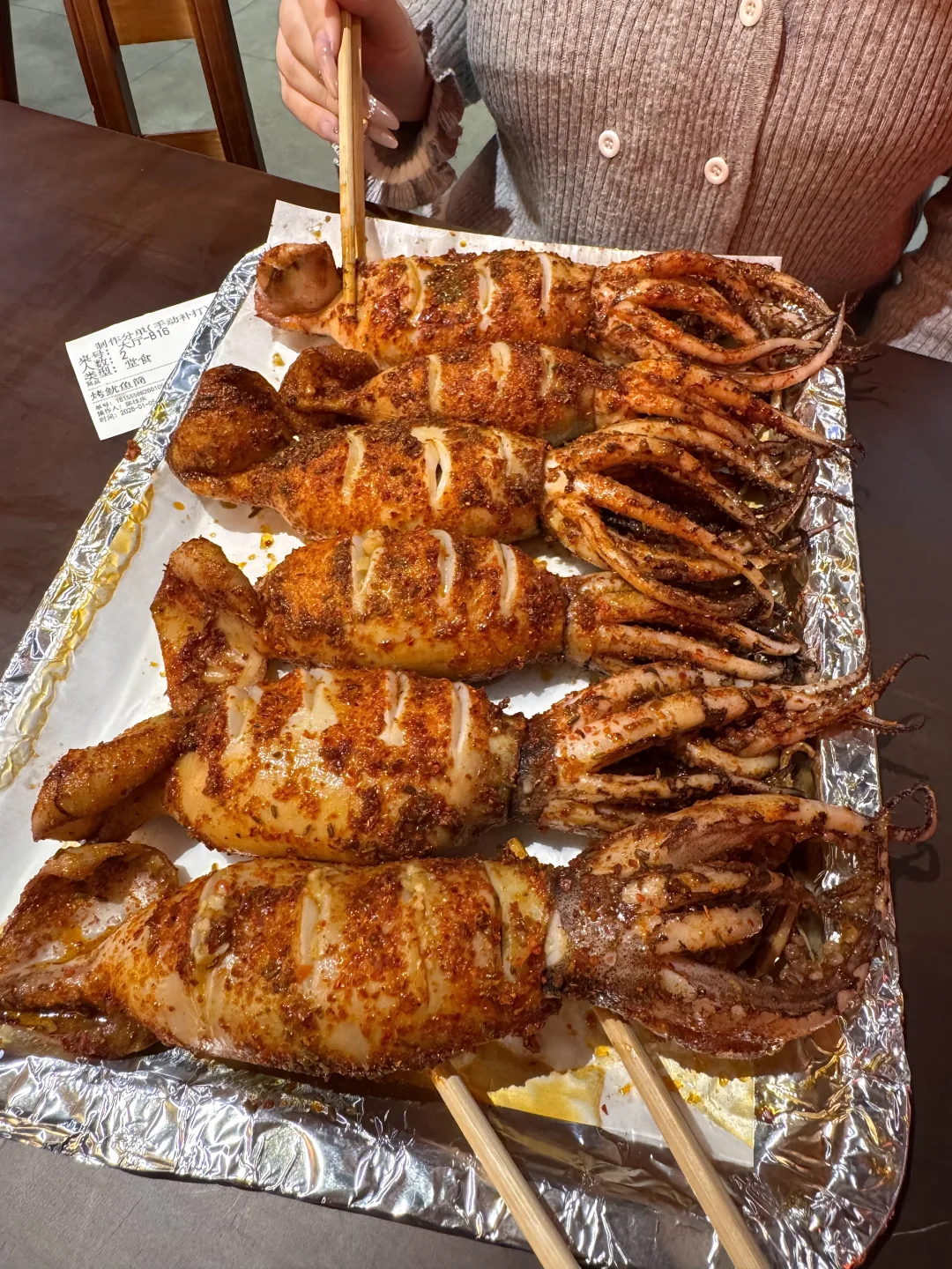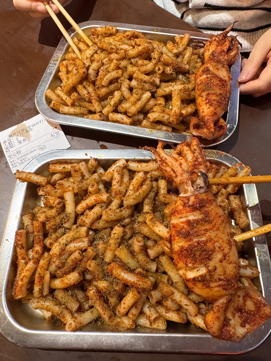 炭烤空心粉!入口哽啾啾的 撒满辣椒面和孜然粉…真的好香好好吃!配上整只大鱿鱼🦑该怎么形容这一口!! 还有烤罗氏虾、烤芝麻、烤黑鱼片…别家没吃过!雷神鸡腿酥脆多汁也是一口惊艳。。值得我带姐妹反反复复来!叫:江一刀)