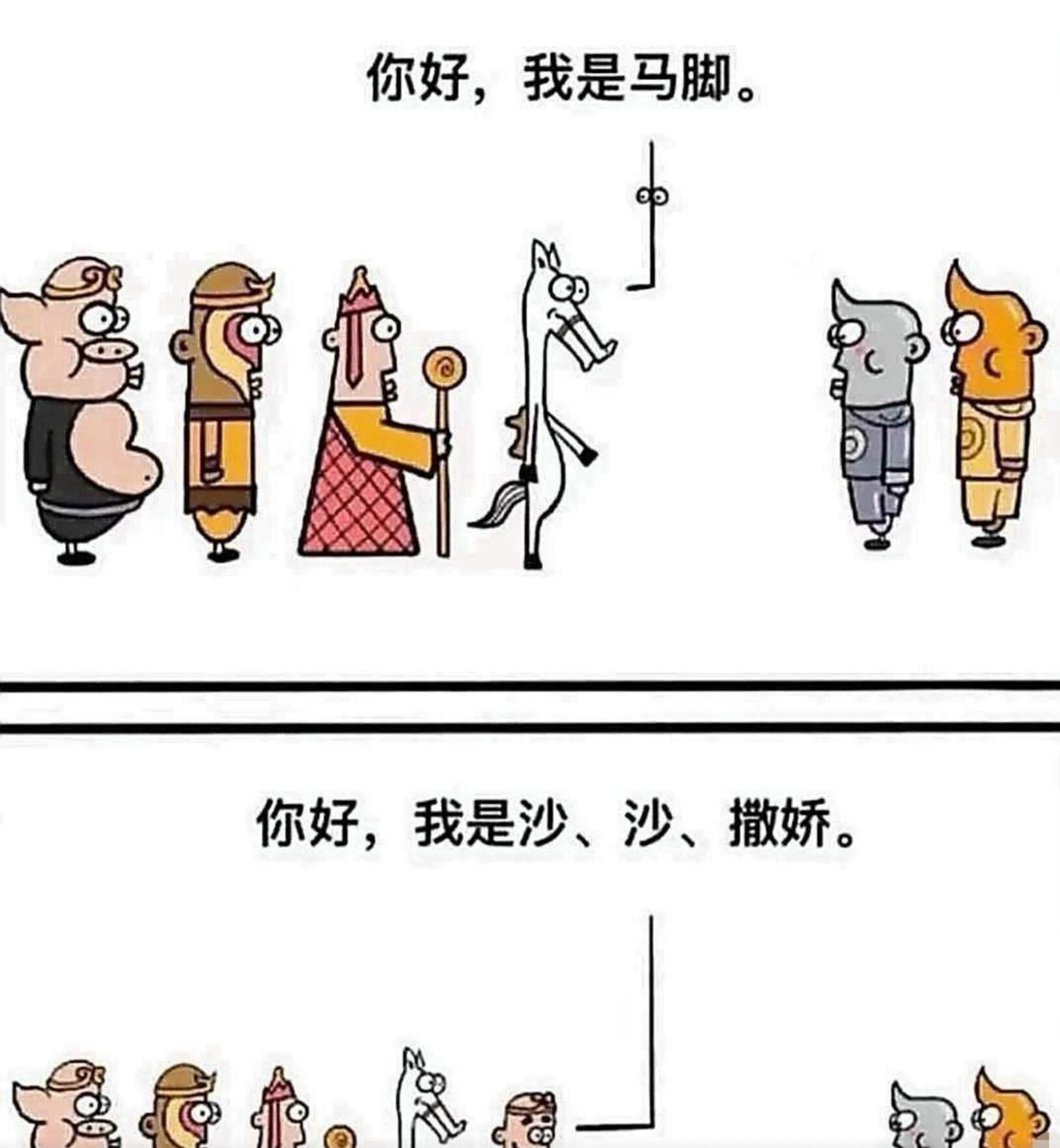 你好,我是马脚。 你好,我是沙、沙、撒娇。