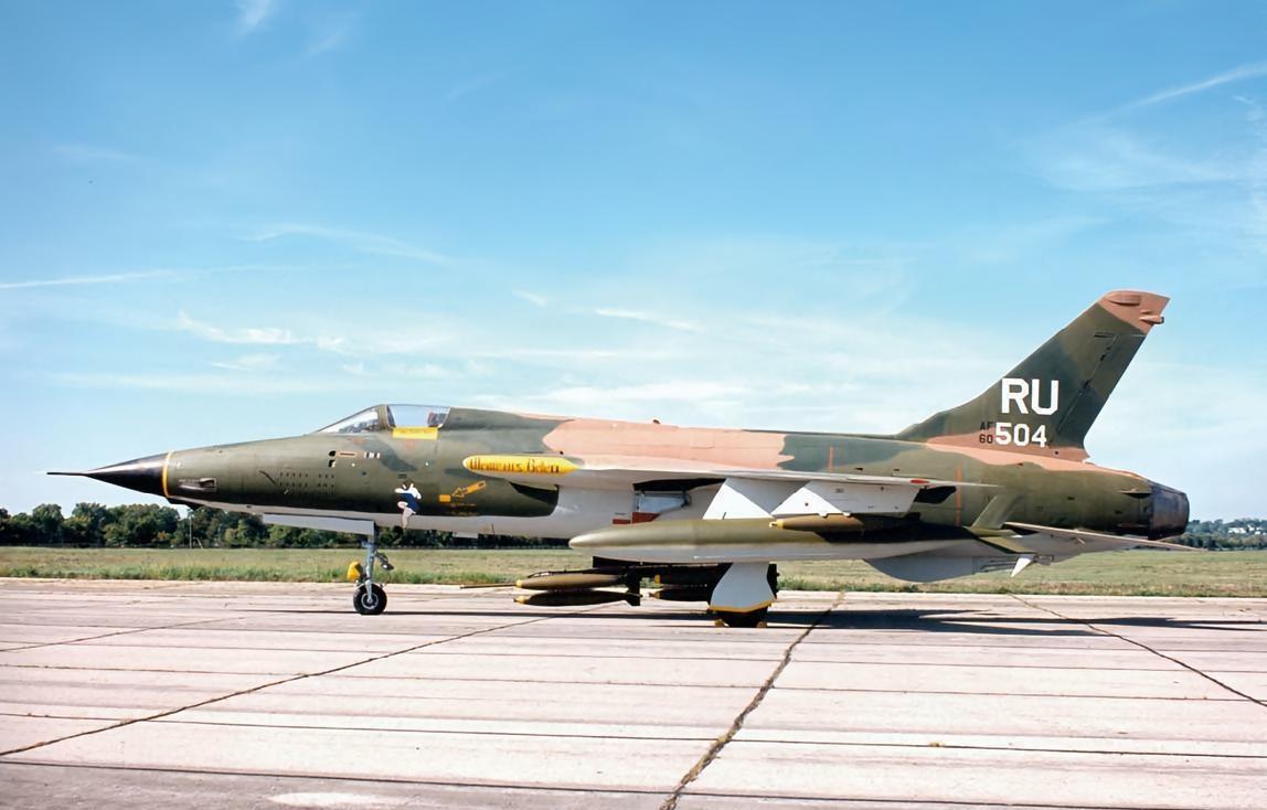 美国F-105“雷公”战斗轰炸机 F-105是美国空军第一种超音速战斗轰炸机,绰号“雷公”(Thunderchief),1958年开始服役。 F-105因为其特大的内部武器舱和翼根下的前掠发动机进气口而出名。该机采用全金属半硬壳式结构,悬臂式中单翼。全动式平尾的位置较低,用液压操纵。动力装置为装1台J75-P-19W涡轮喷气发动机,加力推力为109千牛。 F-105虽为战斗轰炸机,但主要用于对地攻击,空战性能很差。F-105机身前左侧装有1门20毫米的6管机炮,备弹1029发。弹舱内可载1枚1000千克或4枚110千克的炸弹或核弹。机翼下有4个挂架,机腹下1个挂架,可按各种方案携带核弹和常规炸弹、4枚AGM-12空对地导弹或4枚AIM-9空对空导弹。