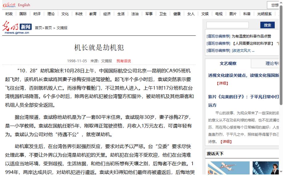 1998年,国航机长袁斌只因为不满分房制度,携带着妻子,驾驶载有95名乘客的飞机叛逃台湾,客机刚飞入台湾领域,就被拦截,乘客瞬间陷入惊恐,但最终夫妻俩的结局却让人拍手叫好...... 1998年10月28日,国航CA905次波音737客机从北京起飞,目的地是昆明。机上载着95名乘客和9名机组人员,谁都没料到,这场平平无奇的飞行,会被机长袁斌搅得天翻地覆。 那年袁斌30岁,已是国航的正驾驶,干这行五年,月薪能拿到1万元——放在当年,这绝对是妥妥的高薪,算得上年轻有为。 可就是这么个握着好饭碗的机长,居然因为不满公司的分房制度,早就跟27岁当老师的妻子徐梅串通好,要干一场荒唐的叛逃。 飞机起飞半个多小时后,袁斌突然跟机组人员摊牌,硬邦邦地要求改道飞台湾,不然就抱着所有人一起完蛋。徐梅则守在驾驶舱门口,把舱门堵得严严实实,不准任何人靠近,整架飞机上百人的性命,就这么被他俩攥在了手里。 这架偏离航线的客机刚一进入台湾空域,就被台湾军方盯上了,很快就被拦截下来,最终在上午11点17分迫降在了桃园机场。 机舱里的乘客一听说自己遭遇了劫机,瞬间慌了神,吓得不行。原本轻松的旅途氛围一下子没了,每个人都觉得小命悬在刀尖上。 不过台湾方面没敢对客机动粗,控制住现场后,就把袁斌和徐梅当场扣了下来。海协跟台湾海基会紧急对接,足足沟通交涉了六个多小时,最后这架被劫的客机由副驾驶文飞安全开回了厦门,机上所有乘客和其他机组人员都平安无事,这场让人提心吊胆的劫机风波,才算暂时告一段落。 知道内情的人都清楚,袁斌这场不管不顾的叛逃,说白了就是为了一套80平米的房子。在他眼里,公司的分房政策对自己不公平,心里的不满没处发泄,反倒冒出了逃去台湾的傻念头,还天真地以为换个地方就能过上好日子。 被台湾警方从飞机上带下来的时候,袁斌还嘴硬,一副理直气壮的样子,说自己一点儿都不后悔。可这份嚣张没撑多久,等他发现自己跟妻子被分开看管,又听说按照两岸的约定,自己大概率要被遣返回大陆时,心态直接崩了。 他开始垂头丧气,不吃饭不喝水,甚至用自杀来威胁,之前那股强硬劲儿全没了,只剩下慌神和后悔。 其实袁斌夫妇这情况不算特殊,那时候台湾社会对劫机犯早就没了好脸色。从1993年到1998年,大陆这边有人劫持民用飞机去台湾的案子就有13起,牵涉到18个人。 这些劫机的一开始都抱着不切实际的幻想,可到了台湾才发现,自己不仅被人看不起,日子过得紧巴巴的,绝大多数人最后都悔得肠子都青了。 早在1994年,两岸就已经达成了“金门协议”,明确了要互相遣返刑事犯。在袁斌之前,已经有7个劫持大陆飞机去台湾的罪犯被遣送回来,还被依法判了刑。 袁斌夫妇显然没搞清楚这个既定事实。而且台湾各界对这次劫机事件反应也很强烈,台“立委”们纷纷站出来要求严肃处理,明明白白地表态,不能让外人觉得台湾是劫机犯的避难所。这一下,袁斌夫妇想在台湾安身立命的念头,彻底泡汤了。 经过整整三年的两岸交涉和博弈,2001年6月28日,按照两岸之前达成的“金门协议”里互相遣返刑事犯的约定,袁斌、徐梅跟另外6个之前劫持大陆客机去台湾的罪犯一起,通过马祖——马尾的通道,被正式遣返回了大陆。 在这之前,台湾的司法机关已经以妨害自由和非法入境的罪名,判了袁斌十个月的刑。而被遣返回大陆后,司法机关又针对他的劫机罪行展开了进一步审理,等待他和徐梅的,是更严厉的法律制裁。 这场因为一己私欲闹出来的叛逃闹剧,最后以两人自食恶果收场。消息传出来后,不管是当时亲身经历过劫机的乘客,还是知道这件事的普通人,都忍不住拍手叫好。 毕竟这种拿别人生命当儿戏、公然践踏法律底线的行为,注定要付出惨痛的代价。