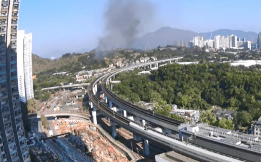 今午2时许,香港天水围虾尾新村对开山头发山火,多名居民报案。截至下午5时,现场有3条火线,其中一条一度长达50米,消防及飞行服务队出动直升机扑救。 从网上图片及片段可见,远处山头黑烟徐徐冒出,席卷半空。