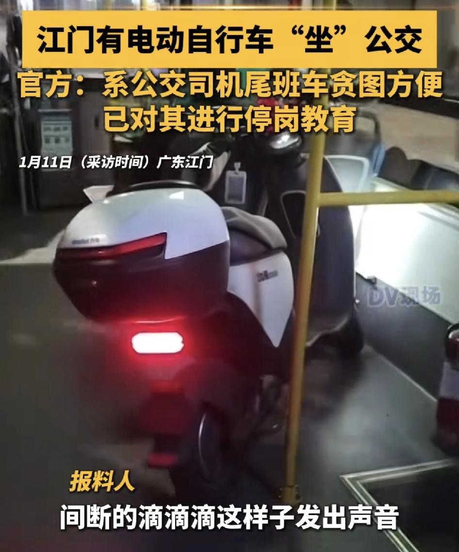 广东江门一位乘客乘坐公交车时发现,车上居然放着一辆电动车,车尾灯还亮着,时不时还发出滴滴的声音。跟公交车公司反映之后,经过核查该电动车是司机贪图方便,当天刚好是司机的尾班车。不管是乘客还是司机,都不可以把电动车放到公交车上,万一发生起火爆炸之类的事情,是极其危险的。