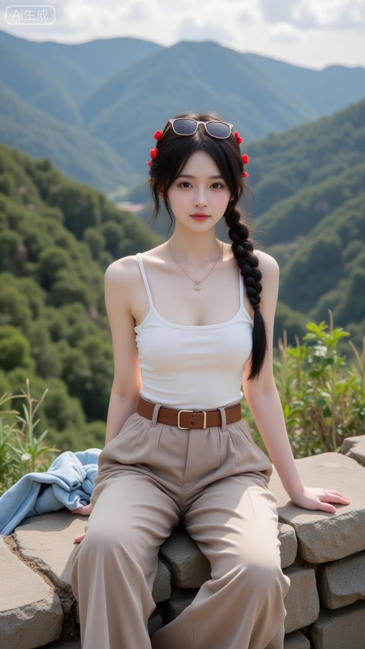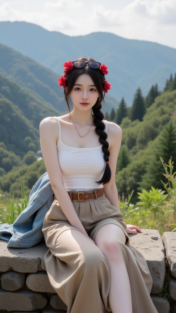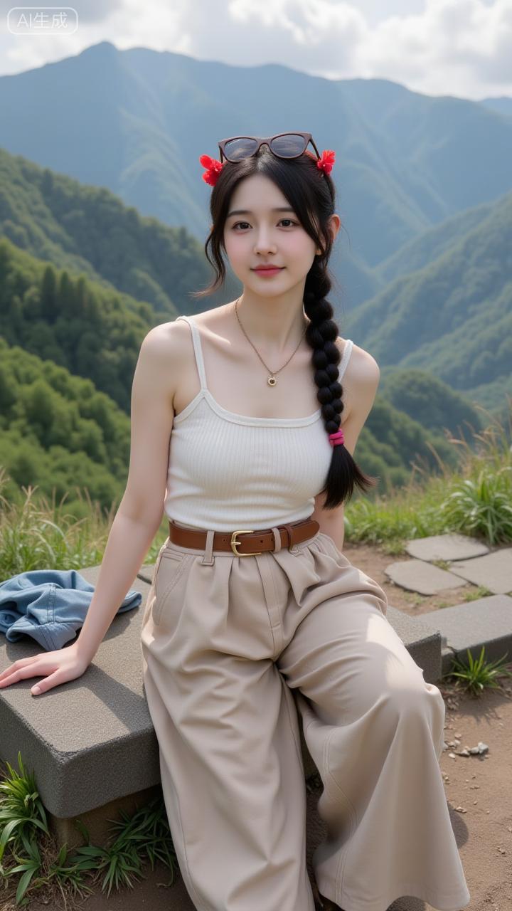 山景里的清甜系花漾少女 白吊带搭卡其阔腿裤,清爽又松弛~发间红玫配长辫,连身后的青山都成了她的温柔背景板✨ 是把“自然甜”焊在身上的妹妹!碎花短裤穿搭