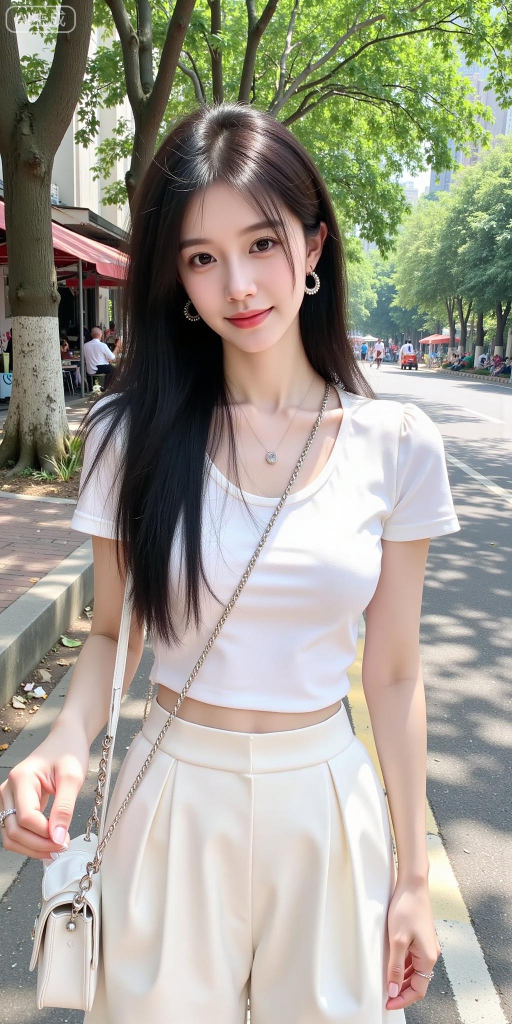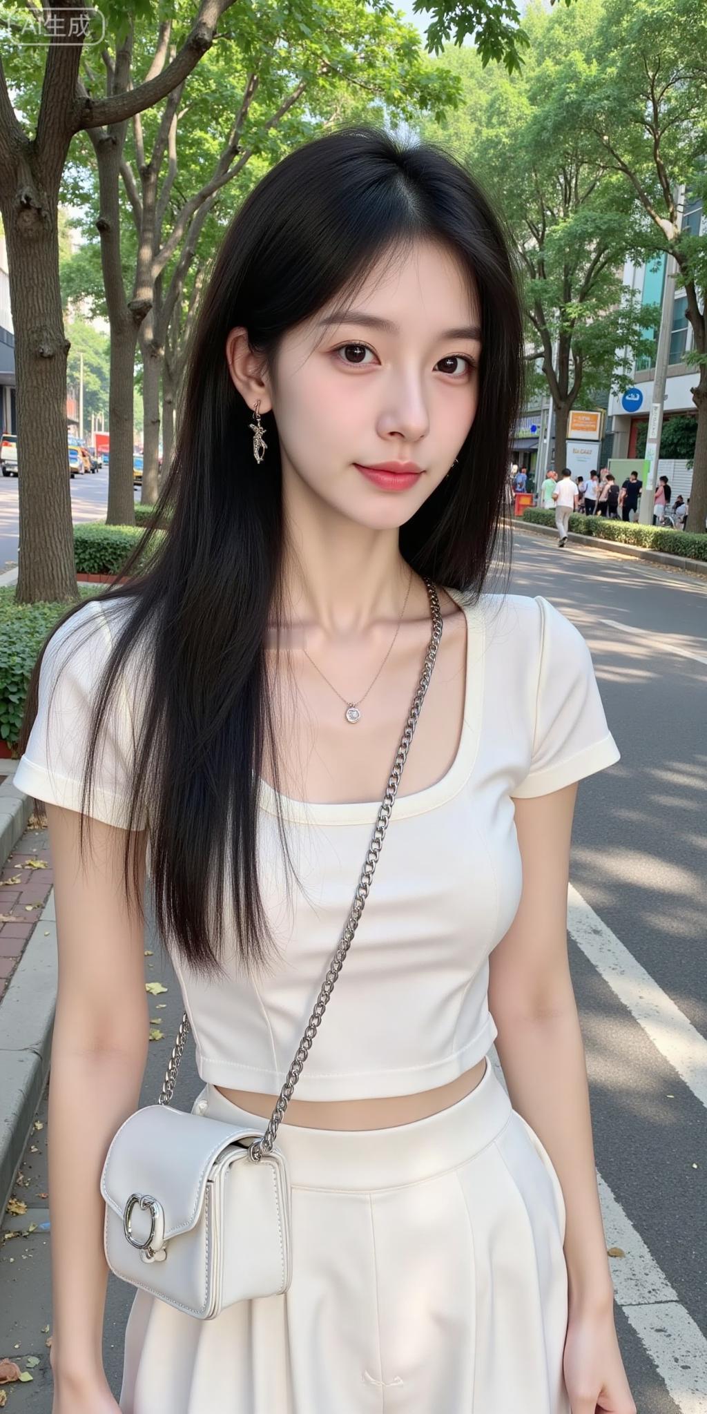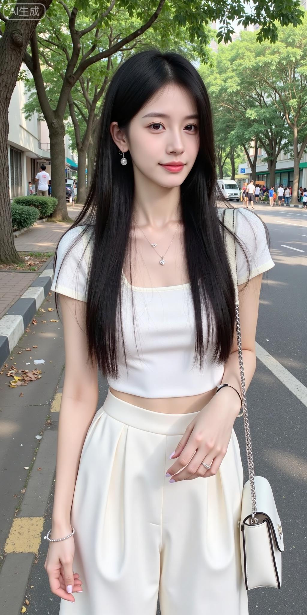 街旁的奶油系清冷美人 米白套装衬得气质又柔又净,细链+碎钻耳饰添了点精致✨ 长发垂肩的松弛感,连街边的树影都跟着柔和起来——是把“温柔贵气”焊在身上的姐姐!米白气质上衣 米白穿搭