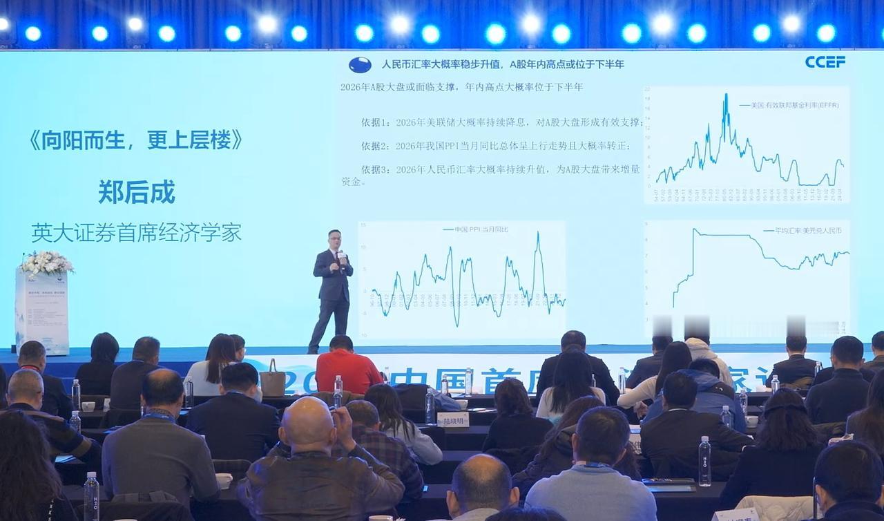 英大证券郑后成:2026年A股高点大概率位于下半年 1月11日,在中国首席经济学家论坛年会上,英大证券首席经济学家郑后成表示,2026年A股大盘或面临支撑,年内高点大概率位于下半年。 郑首席列出; 自己的3条依据: 依据1:2026年美联储大概率持续降息,对A股大盘形成有效支撑; 依据2:2026年我国PPI当月同比总体呈上行走势且大概率转正: 依据3:2026年人民币汇率大概率持续升值,为A股大盘带来增量资金。