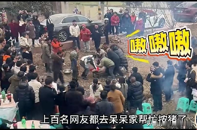 呆呆杀年猪,吓呆的不只是呆呆,还有那几头可怜的猪! 合川文旅更是凌晨2点开始蹲守。 这那是杀年猪啊,这分明就是年前大集会,就是当地人结婚也不见得有这么热闹吧。 看来这杀年猪的杀伤力真不是一般的大,本来只要几个人,却有300多人报名,赶到现场的更是几百人。 竟然有网友怕两头猪不尽兴,还自己带猪过去的,真应了那句,看热闹不嫌事大的。只是最后的猪肉都被帮忙的网友吃完了,他就不怕回家没法交代吗? 这么多人围观杀年猪,其实更多的是感受一下烟火气,更是回忆童年,这看似普通的生活场景,已经离我们越来越远了,甚至有时候只能在梦里看到了。 过年本就图个热闹,杀猪宰羊也是庆祝一年的丰收,和自己亲朋好友分享一年的收获。 我们围观的更是一种生活态度!