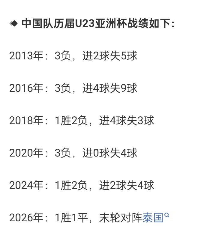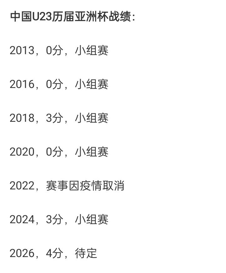 历史第3胜!U23国足亚洲杯本届前2轮已积4分,末轮不败即出线,此前从未出线 1月11日 U23亚洲杯第二轮,U23国足1-0力克澳大利亚U23 中国U23在2轮积4分,暂列小组第一。值得一提的,这也是国足U23历届U23亚洲杯的最高积分。此前5届赛事单届最多仅积3分。 本届U23亚洲杯国足不败,目前U23国足在亚洲杯上的总战绩为3胜1平13负