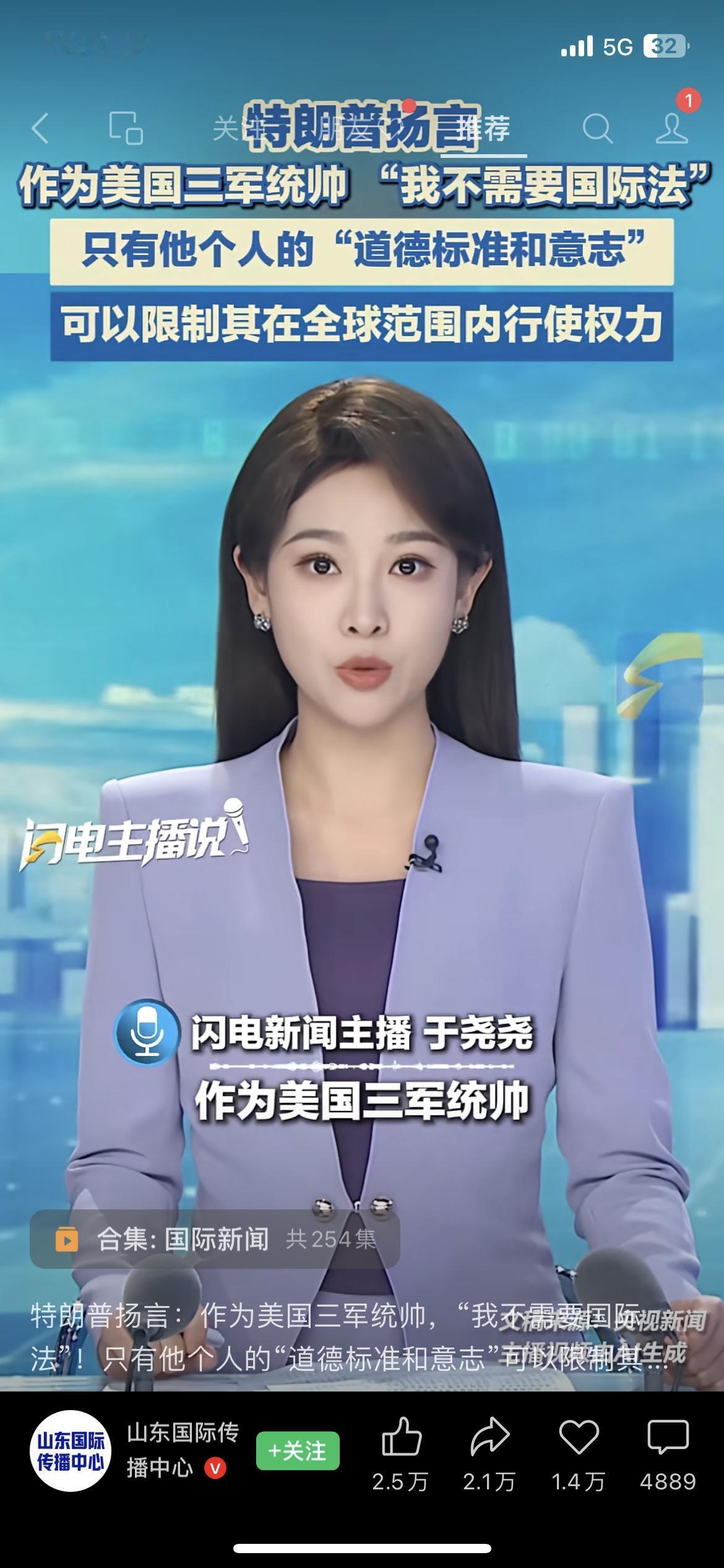特朗普放话:我不需要国际法? 最近特朗普的一番话直接刷新认知,他称作为美国三军统帅,“我不需要国际法”,只有个人道德标准和意志能限制其权力。这番言论把霸权主义摆到了台面上,国际法本是国与国的行为准则,一个大国领导人公然无视,实在让人咋舌。 霸权从来不是靠嘴喊,是靠无视规则的蛮横撑起来的。 更耐人寻味的是,这背后还是美国一贯的“双重标准”——对自己有利就讲规则,不利就直接抛开,这种操作大家早就见怪不怪了。 你觉得特朗普这番言论,会给国际局势带来哪些影响?
