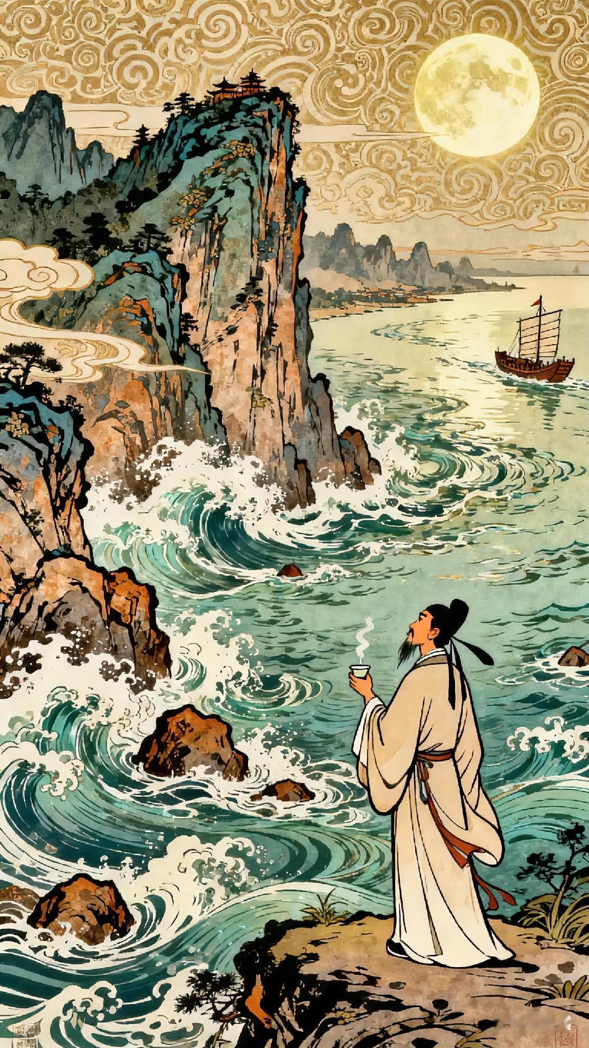 《 念奴娇》宋、苏轼。 大江东去, 浪淘尽, 千古风流人物。 故垒西边, 人道是, 三国周郎赤壁。 乱石穿空, 惊涛拍岸, 卷起千堆雪。 江山如画, 一时多少豪杰。 遥想公谨当年, 小乔初嫁了, 雄姿英发。 羽扇纶巾, 谈笑间, 樯橹灰飞烟灭。 故国神游, 多情应笑我, 早生华发。 人生如梦, 一尊还酹江月。 《念奴娇·赤壁怀古》现译: 长江滚滚东流,千年浪花淘尽了无数英雄豪杰。 旧营垒西侧,传说正是周瑜大破曹军的赤壁战场。 陡峭石壁刺破云天,怒涛拍岸卷起千堆雪浪。 如画江山,曾见证多少豪杰争锋! 想起周瑜当年,迎娶小乔英姿勃发。 手持羽扇从容谈笑间,敌舰已化作飞灰。 神游故国战场,笑我多愁善感徒生白发。 人生恍如梦境,且洒杯酒祭这亘古江月。 苏轼 苏轼诗词赏析 苏轼语录 苏东坡词句 东坡苏轼 苏轼诗词 苏轼名句 天天古诗词 你记得最深的一首古诗词是什么