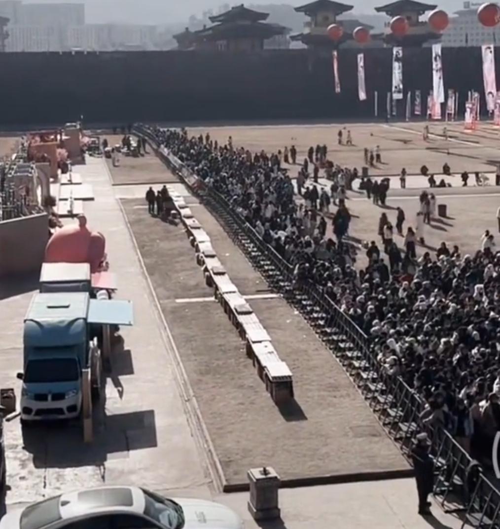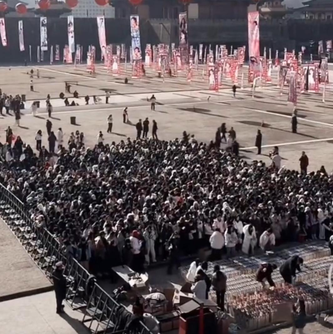 虞书欣的开机应援确实强大 昨晚有无人机表演,还有烟花秀,今天人山人海,上下两层楼都站满了人,现场甚至还放了99个彩烟,她家粉丝还挺喜欢何与的,很多粉丝开机应援这两天都去打卡了何与在横店开的烤肉店,导致店门口排队排很久。