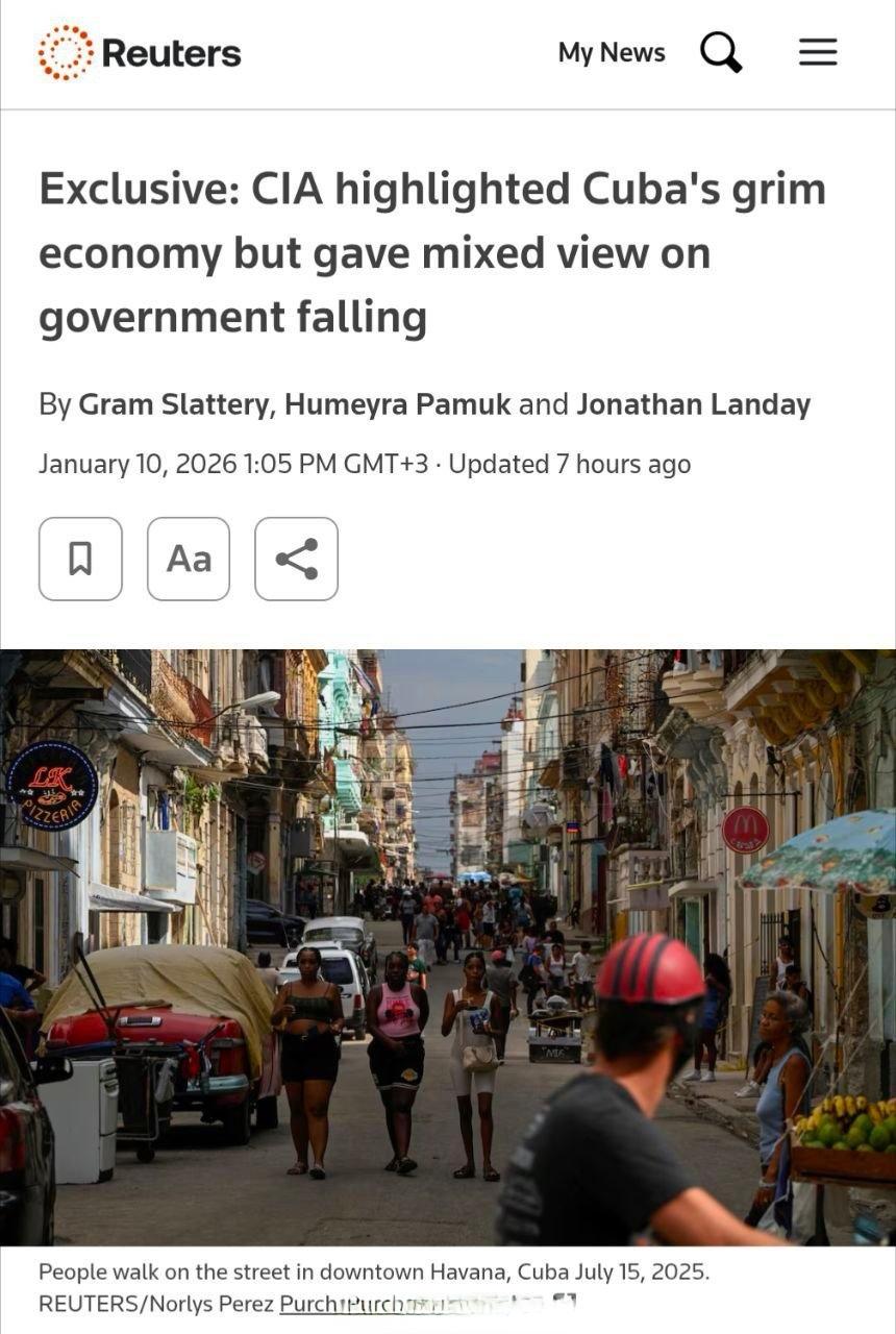 据路透社报道,古巴的经济和政治局势被评估为极其严峻,但美国情报部门并未发现权力即将更迭的迹象。 与此同时,美国中央情报局(CIA)也不认同特朗普关于美国在委内瑞拉的行动加速了古巴政权终结的说法。关键行业——农业和旅游业——因电力短缺、制裁和结构性问题承受着巨大压力。 委内瑞拉石油供应的可能中断可能会使古巴的治理更加困难。不过分析人士并不认为经济危机必然导致政治不稳定。 据美国情报部门评估,古巴局势严峻,但其迅速"崩溃"的可能性目前尚未被考虑在内。
