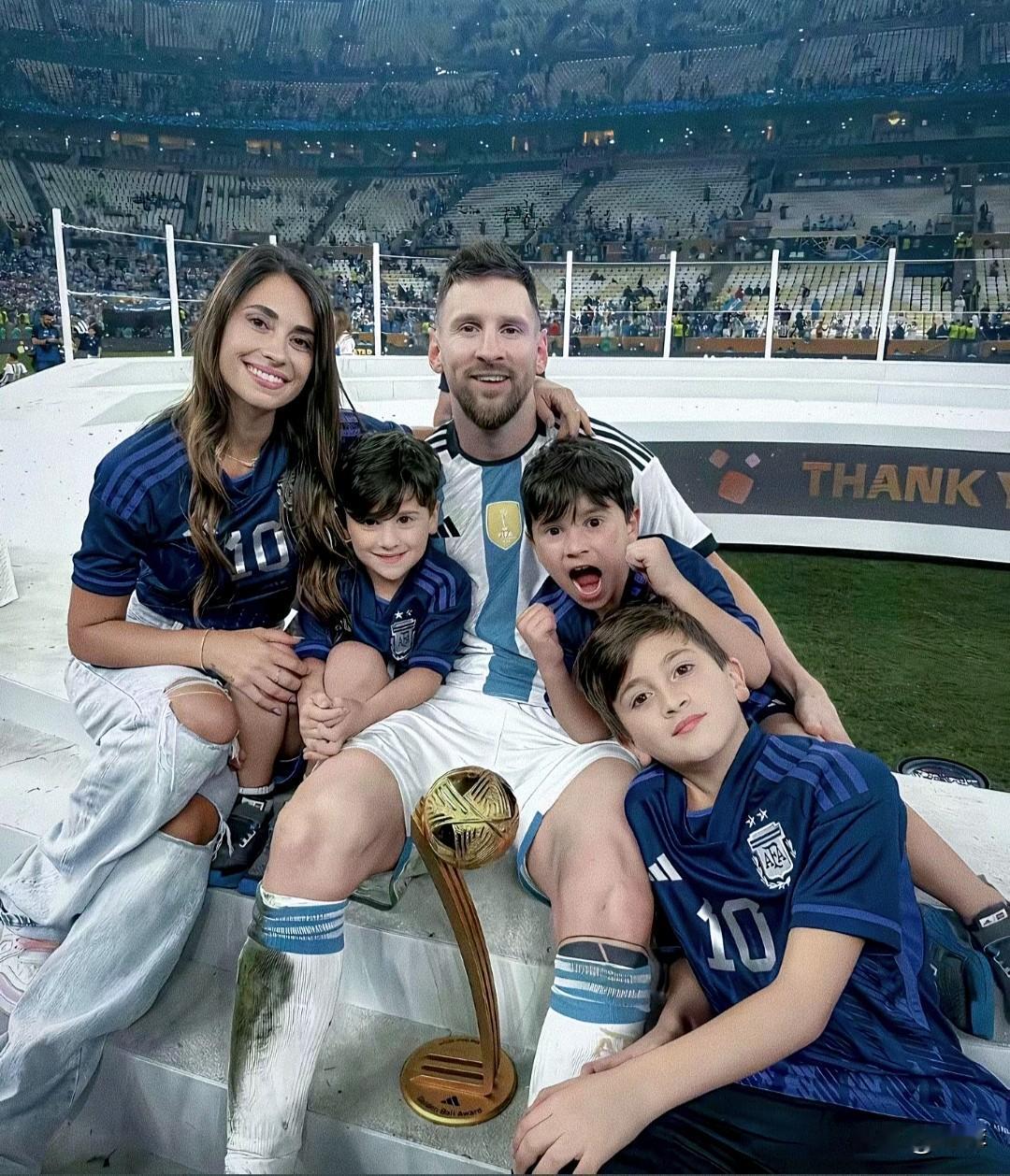 梅西看什么活动都带上老婆哥三个儿子。