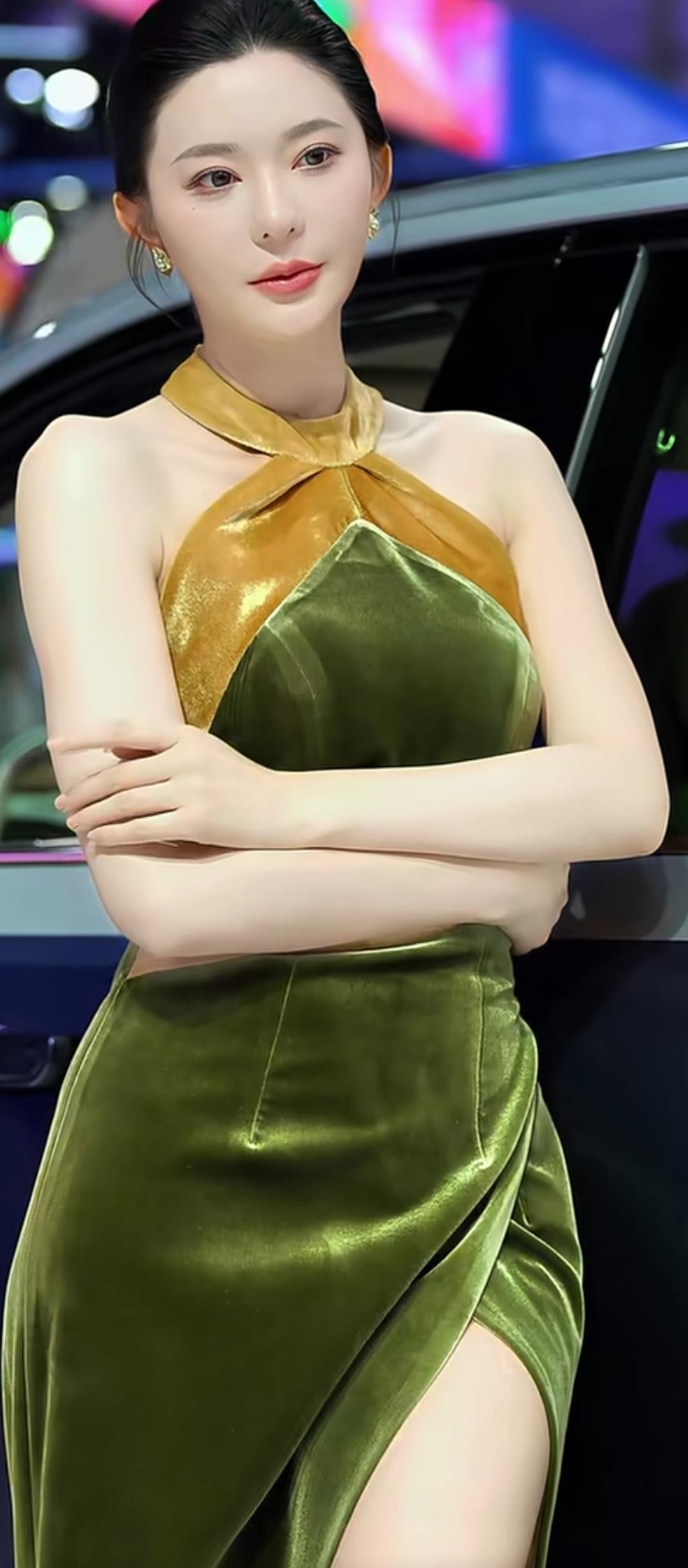 优雅绿金连衣裙,都市时尚女性风范!💃✨