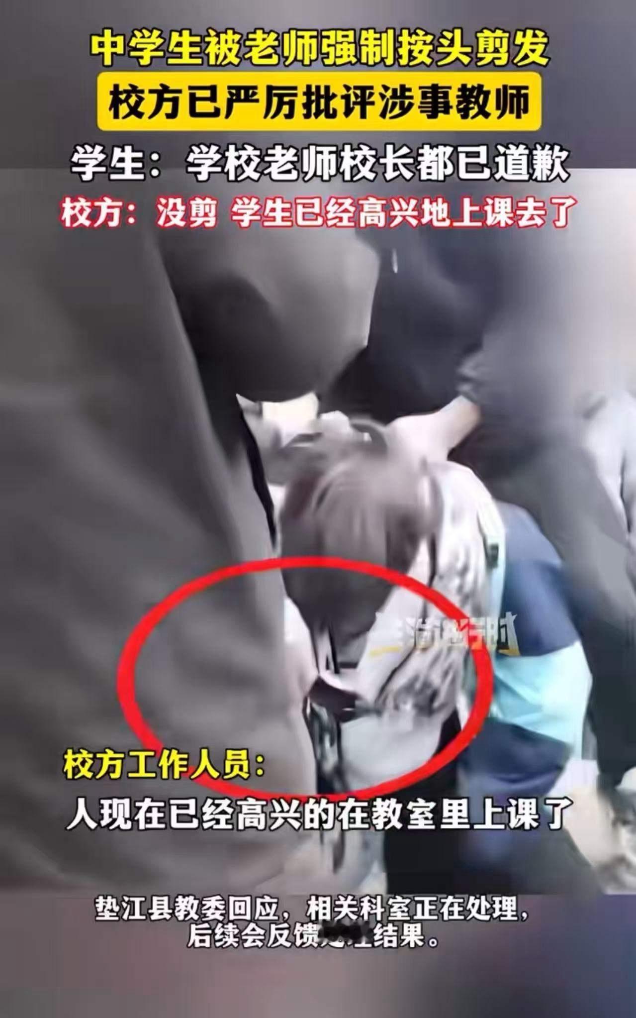 在这个信息爆炸的时代,一段看似普通的剪发视频,却引发了轩然大波。视频中,一位中学生被老师强制按头剪发,动作粗暴而毫不留情,瞬间在网络上引起了热议。有人指责老师的行为过于粗暴,甚至涉嫌侵犯学生权益;有人则认为,老师的行为或许出于传统观念中的“管教”,只是方式不当。 然而,令人震惊的是,事件发酵后,校方迅速做出回应,老师和校长向学生道歉,试图平息公众的愤怒。这一举动虽然体现了他们的责任感,但也引发了更多的质疑:为什么在如此明显的不当行为面前,还要“道歉”而不是“惩戒”?这是否反映出我们教育体系中对师德的模糊认知?还是一种对传统“管教”方式的无声妥协? 网友们的反应更是激烈。一部分人觉得,老师的行为本身就是不尊重学生、侵犯人权的表现,理应受到惩罚和反思。而另一部分网友则提出疑问:“老师没有错,为什么要道歉呢?如果这样都不能管,以后老师还敢教育学生吗?”这句话折射出一种令人担忧的社会心态:对权威的迷信,对规则的模糊,甚至对教育本质的迷失。 这场风波,实际上折射出更深层次的问题:我们对“管教”与“尊重”的界限在哪里?传统的“严厉”是否已经过时?在现代社会,尊重学生的个性和权益,难道不是教育的基本原则吗?如果我们一味追求“威严”,只会让师生关系变得紧张,甚至破坏教育的本质。 更令人深思的是,事件中的“道歉”是否真能解决问题?还是只是一种应付式的危机处理?我们需要的,是一种真正尊重学生、合理管教的教育方式,而不是用粗暴的手段来“威慑”。教育的本质,是引导和激发,而非恐惧和压制。 这次事件,应该成为我们反思的契机。作为社会的一份子,我们要问:在追求效率和“管教”的同时,是否也在丢失那份应有的温度和理性?未来的教育,应该是尊重、理解与引导的结合,而不是简单的“强制”和“惩罚”。让我们共同呼吁:教育应回归本心,让师生关系充满理解与信任,只有这样,社会的未来才能更加光明。剪发 初中生理发
