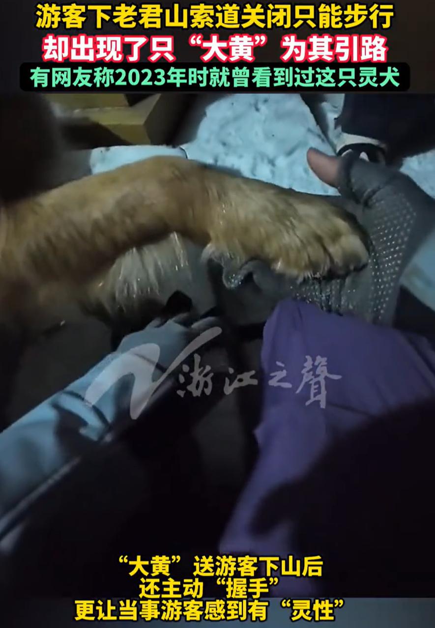 太有灵性了!河南老君山,一男子准备下山时突然赶上索道关闭,只能徒步下山,正当他不知所时,突然一条大黄出现了,对他叫了两声,就一路走在前面为其引路,网友:一定要给它加鸡腿! 当天,李先生和搭子白天上山,一路看风景,看得太投入,等想下山时才发现索道停运了。山里天黑得快,手机手电一照,前面就是一小圈亮,岔路又多,心里发慌很正常。不是怕累,是怕走错,一旦走错,在山里就不是小事 就在两个人站在路口犹豫的时候,一条大黄狗从草丛里窜了出来。不是那种乱冲乱叫的,它跑到前面,回头冲他们叫了两声,又往前走,像是在示意跟上 李先生犹豫了一下,还是跟着走了。接下来的两个多小时,大黄一直走在前面,不快不慢,遇到拐弯还会停一下,等人跟上再继续 直到山脚下,看见亮着灯的木屋,大黄才停住脚步。路到这儿,人也安全了,它没再往前走。李先生临走时伸手想跟它握一下,大黄很自然地把爪子递了过来,动作熟得不像第一次 后来视频发到网上,有网友说自己23年也在老君山遇到过这条大黄,夜里引路,不吵不闹,像是老熟人 很多人看完会说灵性,说成精了,其实换个角度看,这事更值得琢磨的地方在别的地方。第一,这条狗明显长期在这片活动,对路线比人熟。第二,它没有黏人讨吃的行为,引完路就停,这不是偶然,更像是习惯。第三,它对人并不警惕,也不主动攻击,这种状态通常只出现在被长期善待的动物身上 说到底,这不是奇遇,是环境和人的共同结果。如果这条狗平时挨打受饿,它不会靠近陌生人,更不会带路。它能安心待在山里,说明平时有人默认它的存在,甚至照看过它。某种意义上,这是一种山里的默契,人不伤它,它也不害人 这件事也给了一个很现实的提醒。很多人爬山,总觉得有索道、有导航就够了,时间观念一放松,很容易把自己交给运气。真到了天黑,手机信号、电量、体力,哪个出问题都够呛。这次是遇到大黄,下次未必有这样的运气