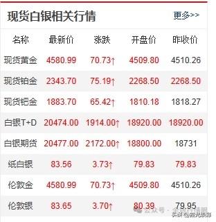 快看! 白银回收价格又上涨了!赶紧来看看,白银回收价格涨到多少钱一克? 银板料9999回收价格19.2元/克, 银条回收价格18.0元/克, 足银回收价格16元/克。 同昨天白银回收报价,今天各品种白银(银板料、银条、足银)都整体上涨了0.4元/克。 业内人士分析:值得注意的是,贵金属价格波动在本周明显加剧。尤其是白银期货价格在本周曾出现单日大涨近8%、两天内累计涨超14%以及两天累计跌超7%的情况。 华尔街投行高盛指出,相较黄金,预计白银交易将持续面临高波动性和不确定性。 就今天亚盘,受地缘风险升温、美联储降息预期及市场避险情绪推动,今日银价突发暴涨并创新高,现货白银站上83美元上方(涨幅超4%),盘中最高触及83.97美元/盎司(刷新历史新高纪录),并逼近84美元大关。 今日白银价格19.43元/克,银饰零售价格每克27至68元区间。 在购买银饰或者制品时,价格会因为设计、工艺和品牌等因素有所不同,另外银价也是每天变化的。 分享个白银回收小知识: 1: 银子是没有折旧费一说的,白银回收都是看它的重量和纯度,这个和新旧没有任何关系的。 2: 白银回收,是不需要任何发票和购买凭证的,如果商家说,你没有发票,要收你手续费的,建议赶紧换一家。 3: 白银回收都是按照当天的国际银价来交易的,在回收之前,你一定要查一下当天的国际银价。 4: 一定要在家里面称一下自己的重量,以免不良商家在秤上做手脚。 所有信息,都只是提供参考价值! 投资还是有风险的,不要盲目跟风! 白银价格疯涨 黄金白银价格 白银市场行情 白银价格 白银价格行情 白银一克 白银板料行情