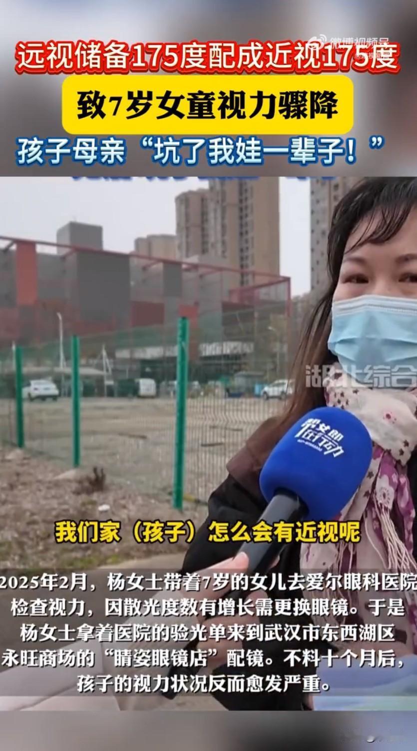 眼镜店配反镜片坑惨7岁女童!10个月耗光4年远视储备,家长崩溃! 湖北武汉一起儿童配镜失误事件,让无数家长揪心又愤怒!7岁女童镜片配反10个月后才发现 眼镜店镜片配反7岁女童视力骤降 话题刷屏后,网友们纷纷怒斥“这是在毁孩子一辈子”,眼镜店的粗心操作,给孩子的视力造成了难以挽回的伤害。 事情的经过让人心疼又气愤,杨女士7岁的女儿一直有散光问题,每年都会定期监测视力,之前只有散光没有近视,还保有175度的远视储备——这可是孩子视力发育的“保护盾”,正常情况下能慢慢消耗4年,有效延缓近视发生。因为散光度数有所增长,杨女士特意带孩子去正规眼科医院做了检查,拿着精准的验光单去眼镜店配新眼镜,本以为这样万无一失,没想到却踩了大坑。 配镜后的十个月里,孩子的视力状况越来越差,看东西总爱眯眼、歪头,还频繁喊眼睛累。杨女士心里犯嘀咕,带着孩子去配镜的门店复查,店员一测竟说孩子有了近视,这让她完全不敢相信。为了弄清真相,她赶紧带孩子去医院做详细检查,医生的话让她瞬间崩溃:孩子的眼镜镜片完全配反了!本该配远视储备175度加散光200度的矫正镜片,被错配成了近视175度加近视200度,相当于给孩子的眼睛装了“反向枷锁”。 医生解释,儿童视觉系统还没发育成熟,错误的镜片会强制眼睛适应异常屈光状态,导致眼轴快速增长,这也是孩子视力骤降的根源。原本能支撑4年的远视储备,短短10个月就被完全消耗,而远视储备一旦耗光,孩子近视的风险会大幅增加,后续进展也可能更快。现在只能给孩子配离焦眼镜,通过让周边图像成像在视网膜前的原理,给眼球传递“停止生长”的信号,才能尽量控制、延缓近视加深。 杨女士又气又悔,直言“坑了我娃一辈子”,她拿着医院的诊断结果找眼镜店讨说法,可对方的态度却十分敷衍,只愿意退换眼镜,不愿承担后续的治疗和矫正费用。根据《产品质量法》,眼镜店售出的镜片不符合验光单标注的标准,属于不合格产品,理应承担赔偿损失的责任。这起事件也不是个例,不少家长都分享过类似经历,要么是度数配错,要么是散光轴位偏差,都给孩子的视力带来了不良影响。 这事儿传开后,网友们彻底炸了锅,“配镜这么严肃的事也能这么粗心?”“把远视配成近视,这不是毁孩子视力吗”“眼镜店的专业度太让人堪忧了”。大家的愤怒,既为孩子的遭遇心疼,也源于对配镜行业乱象的担忧——儿童配镜涉及专业验光、精准加工等多个环节,任何一步失误都可能对孩子视力造成不可逆的伤害。 这起悲剧也给所有家长敲响了警钟:给孩子配镜一定要选择正规、专业的机构,拿到眼镜后最好再去医院复核度数;佩戴期间如果孩子出现揉眼、喊头晕、看东西模糊等情况,一定要及时检查。而眼镜店更该守住专业底线,验光配镜的每个环节都要严谨细致,毕竟每一副眼镜都关乎使用者的视力健康,尤其是孩子的眼睛,容不得半点马虎。配镜镜片 儿童配镜 配镜乱象 来源:湖北综合