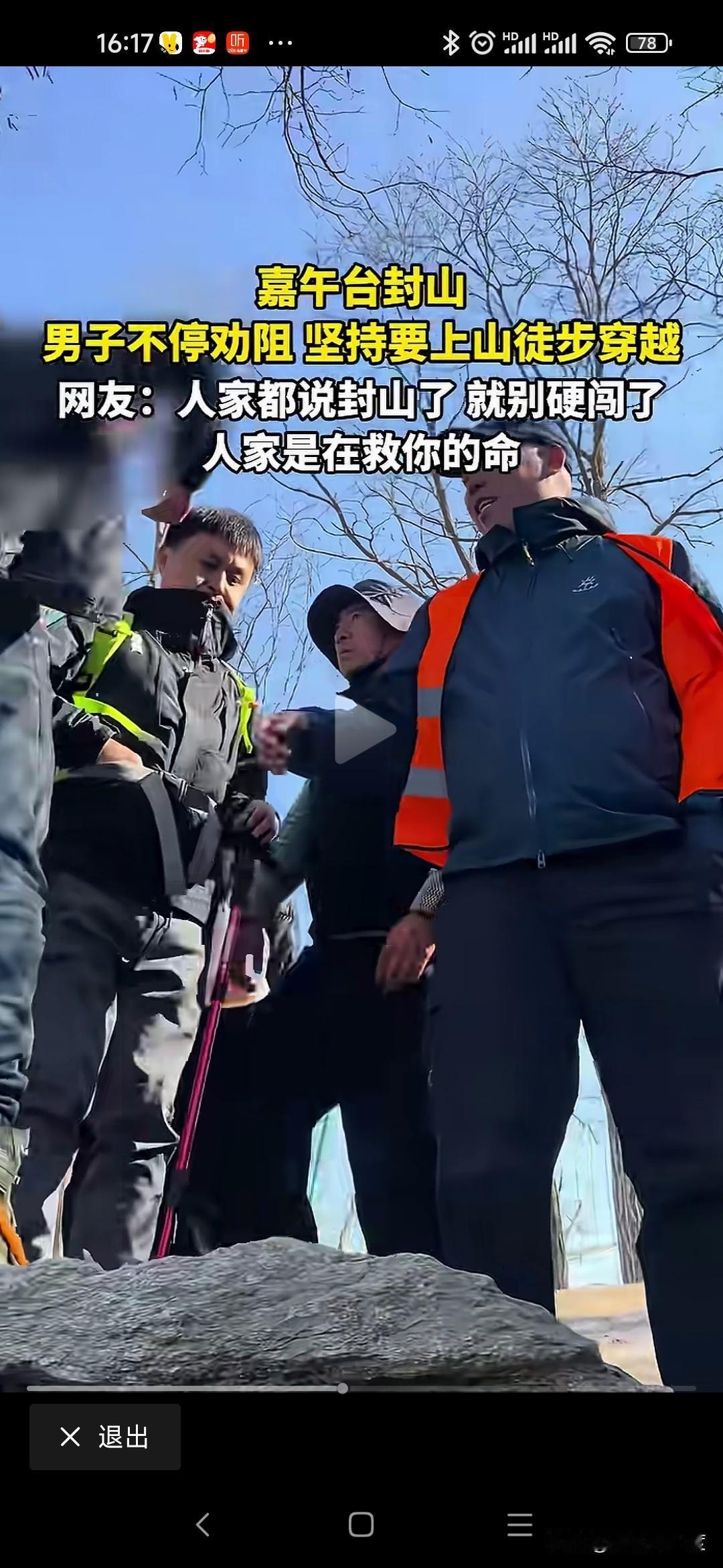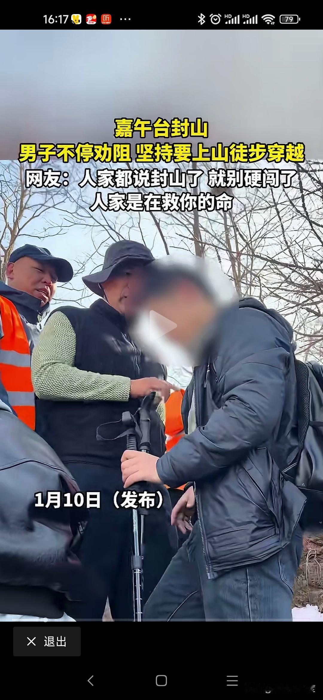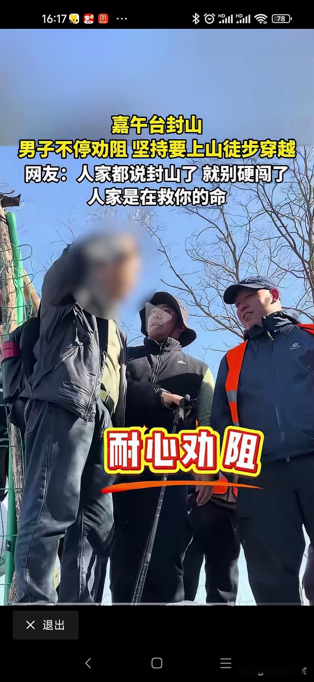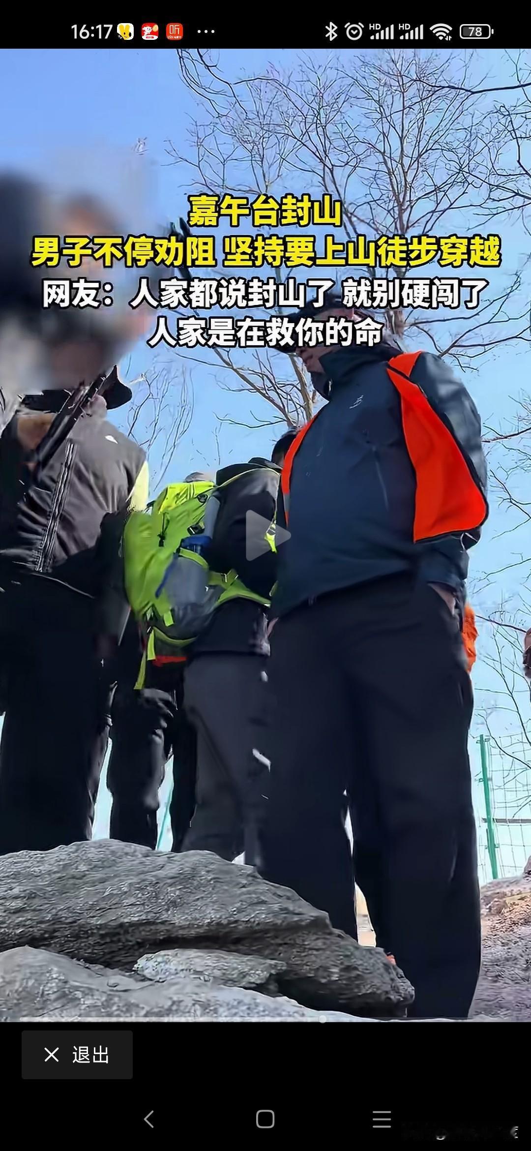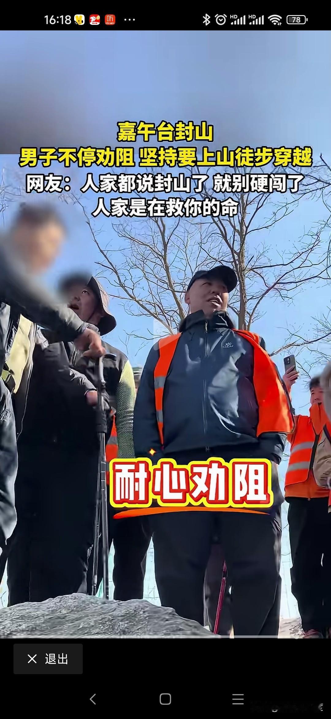 好良言难劝该死的鬼 2026年1月10日,有几名驴友来嘉午台爬山,但嘉午台已经封山,山下有工作人员执勤,发现游玩或者驴友劝阻不让爬山。 结果几名男性驴友非要爬山徒步,工作人员劝阻已经封山不让进山,驴友就是不听非要进山,说自己可以出来不用管。 工作人员怎么劝阻,就是不听绕来绕去就是要进山。 这些天全国发生多起因为冬季爬山,最后迷路甚至出现伤亡事件,这样不怕死的驴友还是不听就是要爬山。 你们工作心烦体累,趁着休息日出来玩玩可以理解,但是大冬天上山,晚上山区降温厉害,真的迷路出现失温,坠崖人可能出现伤亡,最后难免呼叫救援,救援队冒着生命危险,晚上连夜搜索,浪费人力物力甚至牺牲工作人员,去救你们几个该死的鬼! 成年人了能不能对自己的家人负责,对自己的生命负责!
