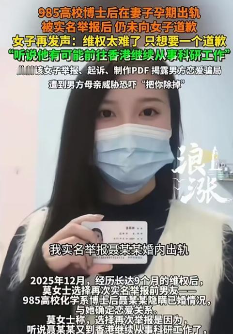 北京,女子以为男友脚踏两只船,假借用他手机买东西,查看男友聊天记录,结果看到男友母亲给他发小婴儿视频。原来男友早就结婚生子,而他备注老板的那个人,竟然是他的妻子!女子崩溃了,自己真心找结婚对象,结果成为了插足他人婚姻的第三者! 莫女士一直对爱情抱有理想化的幻想,她希望遇到一个真心可靠、生活稳定的伴侣。几个月前,她在一个相亲网站上认识了聂某。 聂某的资料看起来几乎完美:据说是博士学历,体制内稳定工作,年薪可观,还附带了一套购房贷款证明。照片里的他仪表堂堂,微笑中透着自信和温文尔雅的气质。 刚开始聊天,聂某总是耐心倾听她的琐碎生活,偶尔发来关心的问候,让莫女士觉得自己被珍惜。 每次视频通话,他都在办公室或者家中拍摄,环境整洁干净,丝毫没有破绽。聂某经常夸自己工作稳定,生活简单却充实,让莫女士心里暗暗盘算:“这就是我要找的人吧。” 几周后,聂某提出见面。第一次见面,他的举止彬彬有礼,衣着得体,言语中充满了学识与幽默感,让莫女士更加确定了他的“优质”印象。 几次约会下来,聂某总是尽力制造浪漫:偶尔送花,偶尔约她去咖啡厅或者公园散步。莫女士完全沉浸在这份甜蜜里,她甚至开始憧憬两人的未来,想着结婚、成家。 随着交往深入,一些细微的异常开始出现。聂某偶尔会无故消失几个小时,电话也不接,信息回复总是含糊其辞。 起初,莫女士以为是工作忙碌,但不安的感觉却越来越强烈。 一次,她偷偷查看了聂某的社交动态,却发现他有一些模糊的线索:偶尔朋友圈里出现带孩子的照片,备注中他称对方为“老板”。 起初,她以为是误会。为了确认事实,莫女士借口“帮忙买东西”,拿到了聂某的手机。 当她打开聊天记录时,眼前的一幕让她整个人僵住——手机里充满了小婴儿的视频,孩子笑得天真无邪,而发送视频的人正是被他备注为“老板”的女人。 继续翻看聊天记录,她震惊地发现,这位“老板”其实是聂某的妻子! 莫女士的心彻底碎了。她没想到自己所谓的恋情,竟然是一场精心设计的骗局——自己成为了他婚姻中的第三者。 愤怒、羞辱、悲伤交织,她几乎失去理智,但很快,她清醒地意识到,自己不能沉默。 戴上口罩,莫女士实名向聂某所在的事业单位举报,提交了他在妻子怀孕期间的出轨证据。 单位很快处理了聂某——他被记过处分,并取消评优资格。这让莫女士略感欣慰,但她没想到,更大的恐惧才刚刚开始。 自从举报聂某之后,莫女士便开始遭到聂某跟聂某母亲的威胁。深夜她的手机频繁响起,屏幕上显示着陌生号码。 每次接起电话,电话那头传来低沉、冰冷的威胁声:“撤回举报,否则你会后悔。”那声音不大,但带着令人无法忽视的压迫感,让她的耳膜像被针刺般紧张。 电话挂断后,她会在床上颤抖很久,手心湿透,甚至夜里惊醒时还会觉得有人潜伏在房间角落,随时会出现。 出门成了噩梦。电梯里偶尔出现的陌生人,楼道里轻微的脚步声,快递员轻声问候的语气——这些本应平常的生活细节都让她紧张得几乎无法呼吸。 她开始绕远路出门,回家时一遍又一遍地观察周围,生怕有人尾随。每一次开锁,她都屏住呼吸,手指因紧张而微微发抖。 恐惧并未打倒莫女士,她选择依靠法律保护自己。 她将监控视频、威胁电话和骚扰证据提交给警方,警方介入后,聂某的母亲因骚扰行为被罚款200元。然而,莫女士心中仍旧有阴影,每次回想起被威胁的经历,她都感到心悸。