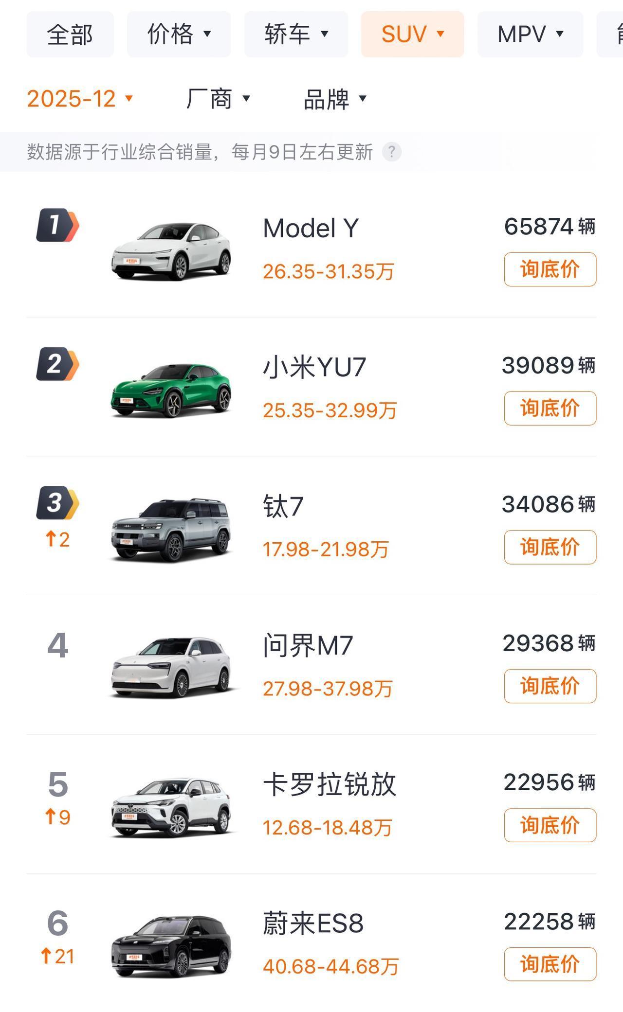 方程豹12月销量干到了50868台,同比暴涨345.5% 首次破五万,直接杀进新势力月度销量前三! 钛7单月销量:34086台 (SUV销量总榜前三,混动+方盒子双料冠军) 平均成交价:23.4万元 全年销量:234637台 (同比+316.1%) 你觉得方程豹这匹“猛兽”能在新势力前三的位置坐稳吗?它的哪款车是你的菜?
