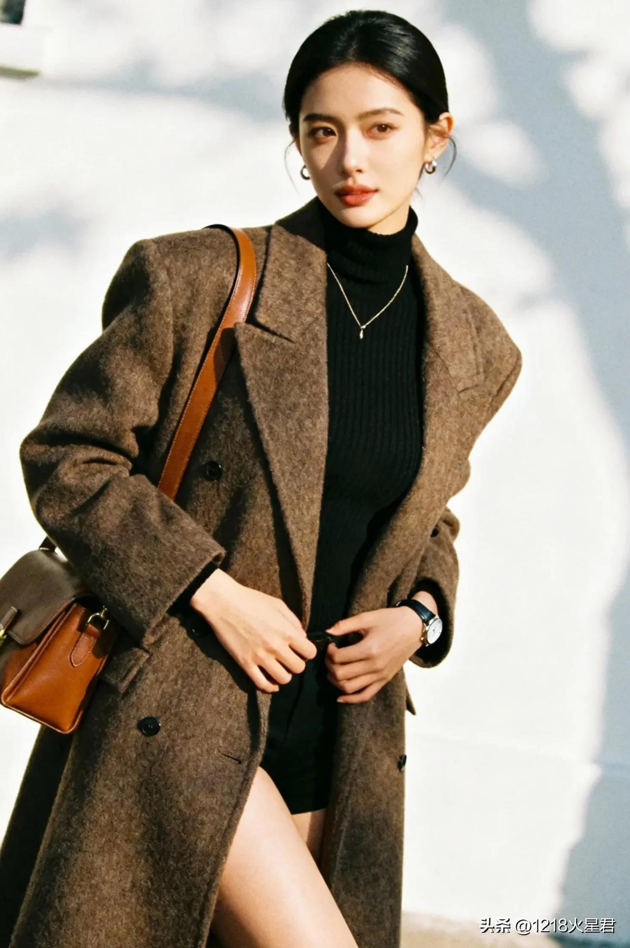 看看气质女神的穿着搭配吧长款的风衣配上短裙和靴子,既有风度又有温度。