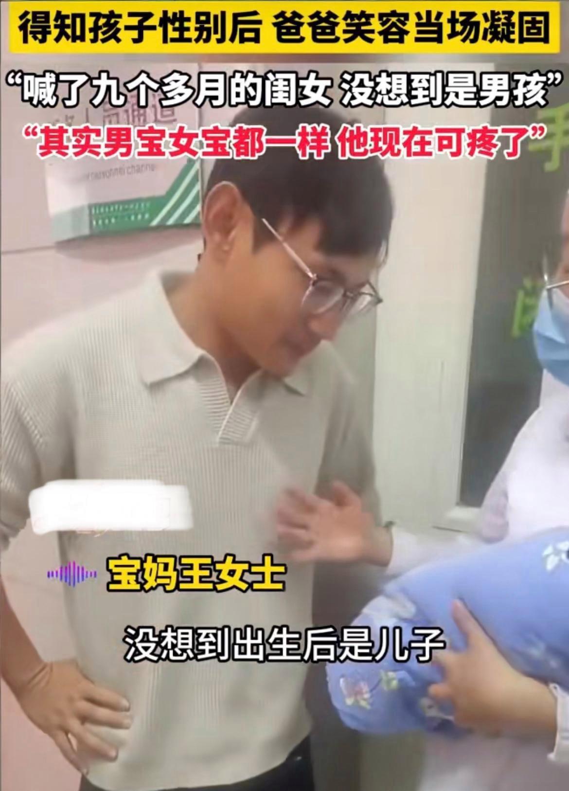 安徽淮南这位三胎爸爸的“笑容凝固”,真的说出了很多现代父母的心声! 本来已经有一儿一女凑成“好”字,满心期待再来个小棉袄,结果盼了九个多月的“闺女”,最后成了带把儿的老三。想想那些提前备好的粉色小衣服、小被褥,还有天天挂在嘴边的“我的小公主”,换谁不得愣几秒啊? 网友调侃得特别逗:“本来以为是招商银行,结果又来个建设银行”,这话虽扎心却真实。现在养孩子成本不低,尤其想到以后可能要准备三套婚房,难怪爸爸会当场“石化”。但好笑的是,这位爸爸也就失落了一会儿,转头就把小儿子疼上了,果然亲情哪分什么性别。 其实现在很多家庭早没了以前的重男轻女,反而更想要女儿,不是性别歧视,而是觉得女儿更贴心,养老时能多些陪伴。但不管是“皮夹克”还是“小棉袄”,健康平安才是最实在的。 这位爸爸的反应之所以让人共情,就是因为太真实了——有期待,有落差,但最后都抵不过对孩子的爱。那些孕期的满心憧憬,那些小小的失落,最终都会被宝宝的哭声、笑容融化。