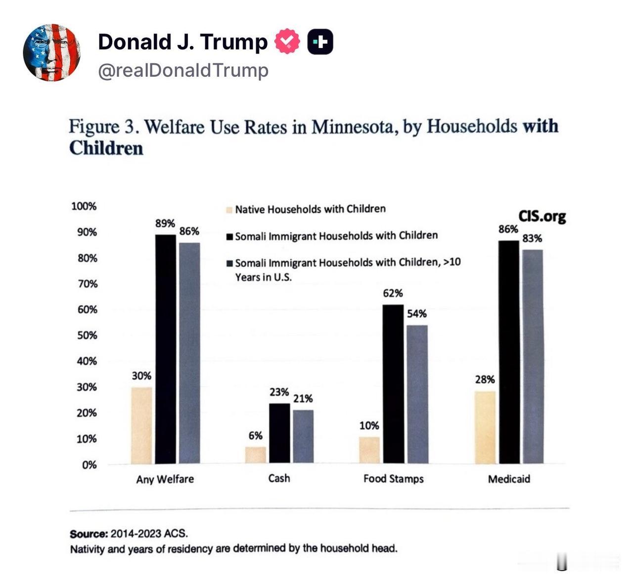 突发新闻:特朗普总统刚刚公布了一项重磅数据,证明美国的索马里家庭大量依赖美国纳税人。 福利:89% 医疗补助:86%! 食品券:62% 远高于本地家庭。 这就是他们必须回去的原因!没有任何疑问!