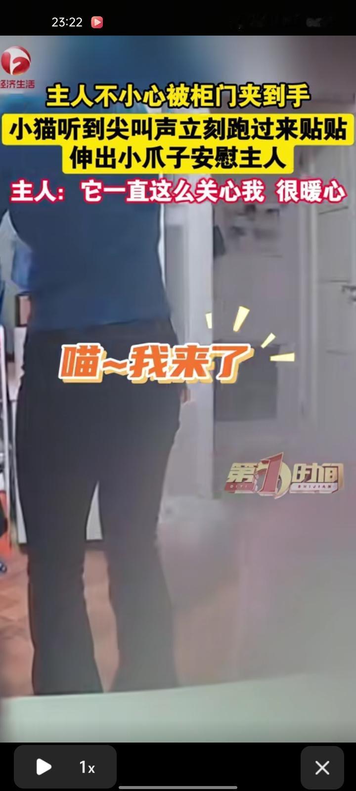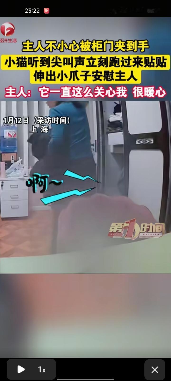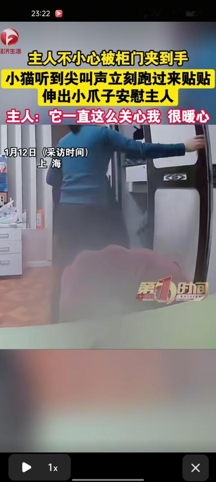 1月7日,上海。女子不小心被柜门夹到手 叫了一声,小猫听到尖叫声后立刻跑过来贴贴,伸出小爪子安慰主人。 当事人表示,我的猫猫一直这么关心我,平时我受惊吓或大声说话的时候,它都会急切过来查看情况,特别暖心。