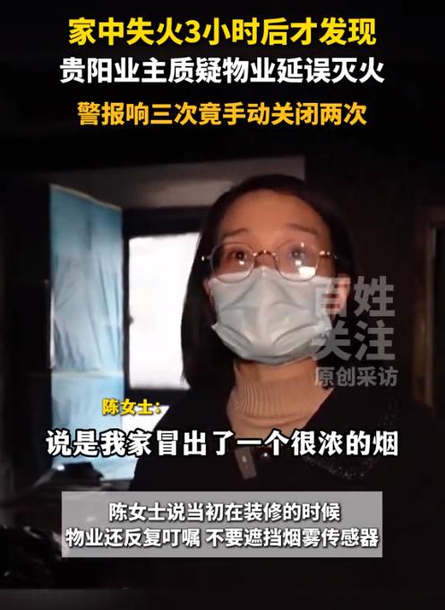 贵州贵阳,一老人因忘关小电炉引发大火,损失惨重。老人的女儿却要求物业公司承担责任,因为烟感器报警3次,物业工作人员手动关了2次。而且下午1点多起的火,直到4点多女子才接到通知。女子认为物业管理不当,所以应当承担损失。(来源:百姓关注) 据悉,陈女士家住某小区48楼的超高层,是个三室一厅的大房子。当初装修时因为担心改动消防设施担责,所以特意保留了开发商安装的烟感器,家里总共有五六个。 事发当天上午10点多,陈女士家的老人打开小电炉热东西,结果忘记了这事儿,转身去隔壁楼看孙子去了,结果可想而知,家里被烧了起来。 下午4点多的时候,物业工作人员突然给陈女士打电话,说家里着火了。当陈女士赶到时,火虽然灭了,但家里也烧得漆黑一片,家具等烧毁不少。 事后陈女士去物业处询问是否听到烟感器报警,物业工作人员查询了下烟感器的报警记录,发现在下午1点46分、2点23分、2点44分有三次报警,可是前两次报警竟然被物业工作人员给关了。 陈女士对此十分生气,如果物业能早点通知,说不定损失会减少很多。而更让陈女士生气的是,在她向物业公司讨要说法时,物业全程回避,还趁乱把陈女士家的五六个烟感器全拆了。 陈女士认为物业是要销毁证据,于是立即进行了阻止。目前,陈女士决定走法律途径维权。 从案情来看,这起事件的主要责任肯定是陈女士家里的老人,所幸火灾的危害范围不大,否则至少是刑事处罚。 但即便没有刑事处罚,陈女士家的老人也要受到行政处罚。 《消防法》第64条第2项规定,过失引起火灾,尚不构成犯罪的,处十日以上十五日以下拘留,可以并处五百元以下罚款;情节较轻的,处警告或者五百元以下罚款。 既然确定了陈女士家是有责任的,接下来就要确定物业公司的责任了。 按照陈女士所说,其家中安装了五六个烟感器,而且火灾发生时,烟感器是有报警的,但前两次报警被物业工作人员给关了。 如果陈女士所说属实,那物业公司肯定是有责任的。 物业公司作为小区内的管理者,是有义务对小区内能威胁到业主人身安全和财产安全的事物进行排除。 《民法典》第942条第2款规定,对物业服务区域内违反有关治安、环保、消防等法律法规的行为,物业服务人应当及时采取合理措施制止、向有关行政主管部门报告并协助处理。 因此,物业公司前两次关闭烟感器报警的行为,属于怠于履行职责。 至于双方各自的过错占比多少,需要结合实际情况来综合判断。 既然现在物业不主动承担责任,还拆了烟感器打算毁灭证据,那这事就必须和物业硬刚到底,要让物业承担其应有的责任。 当然,物业公司除了要承担相应的民事赔偿责任外,还需要承担因未及时报警,所产生的行政处罚。即行政拘留10~15日,并处500元以下罚款。 最后,作为高层建筑群,这个安全问题一定要十分重视,香港宏福苑大楼火灾事件让161人失去了生命,甚至还牺牲了一名消防员,这样的悲剧不能再重演。 如果物业公司仍不能正视这个问题的严重性,建议陈女士小区的业主可以将这种没有责任心的物业给换了。 对此,您怎么看?欢迎留言交流。