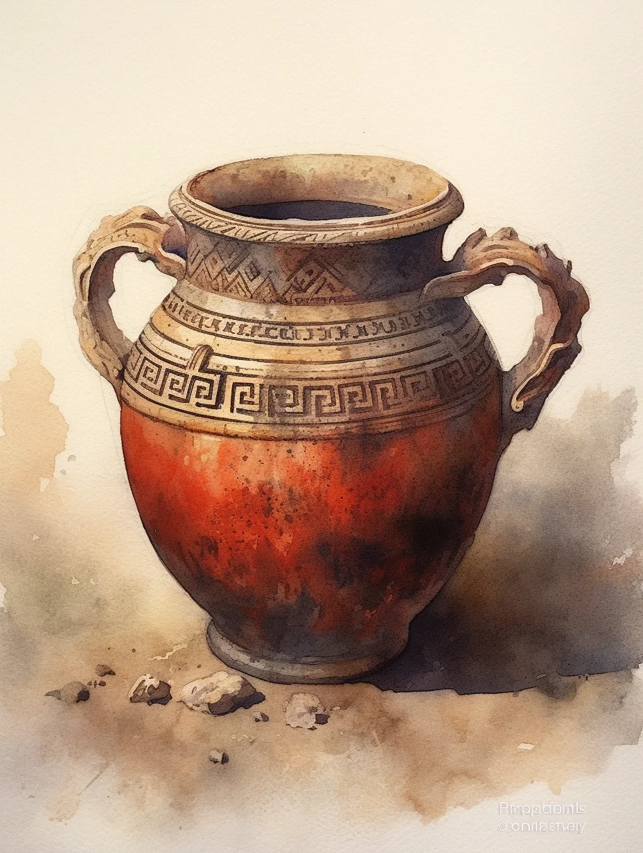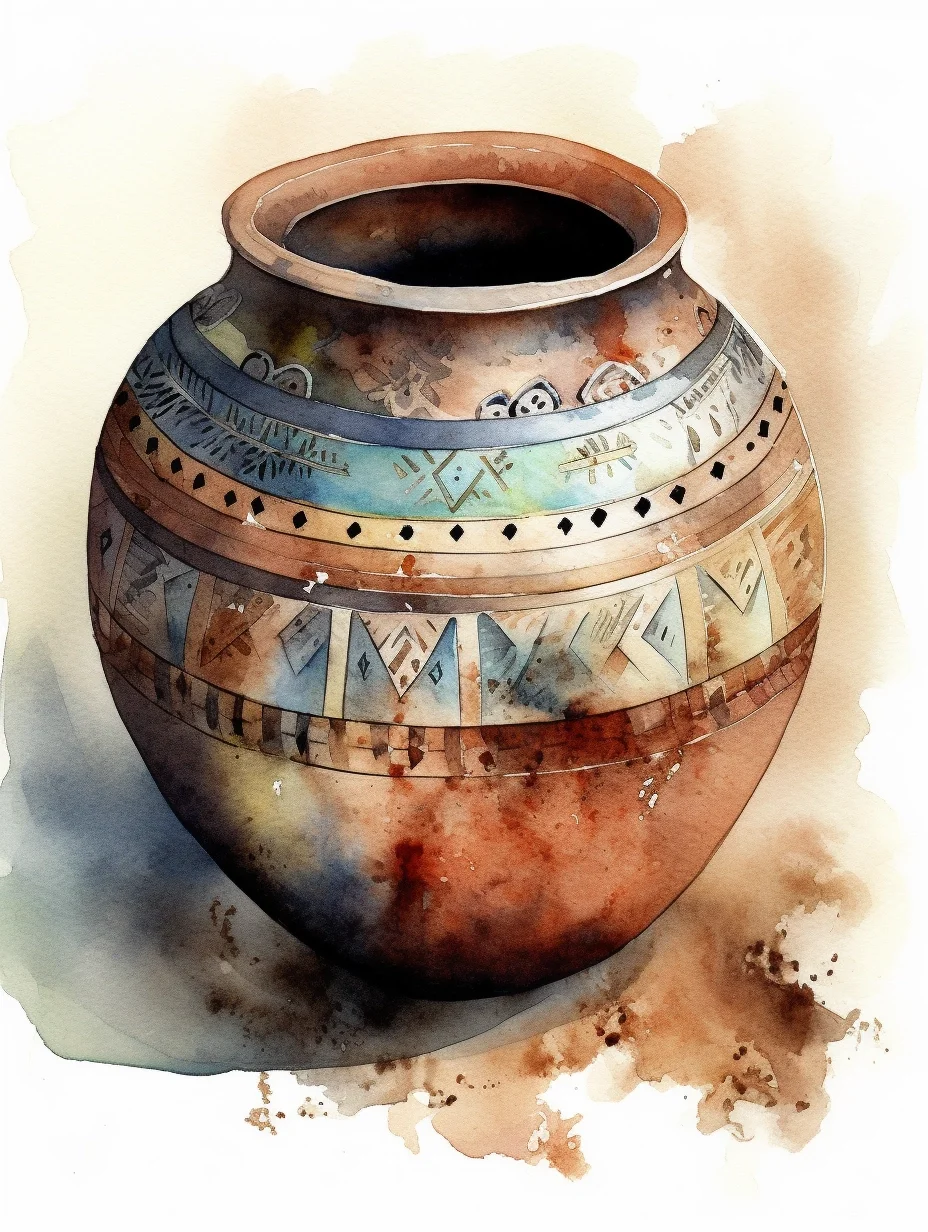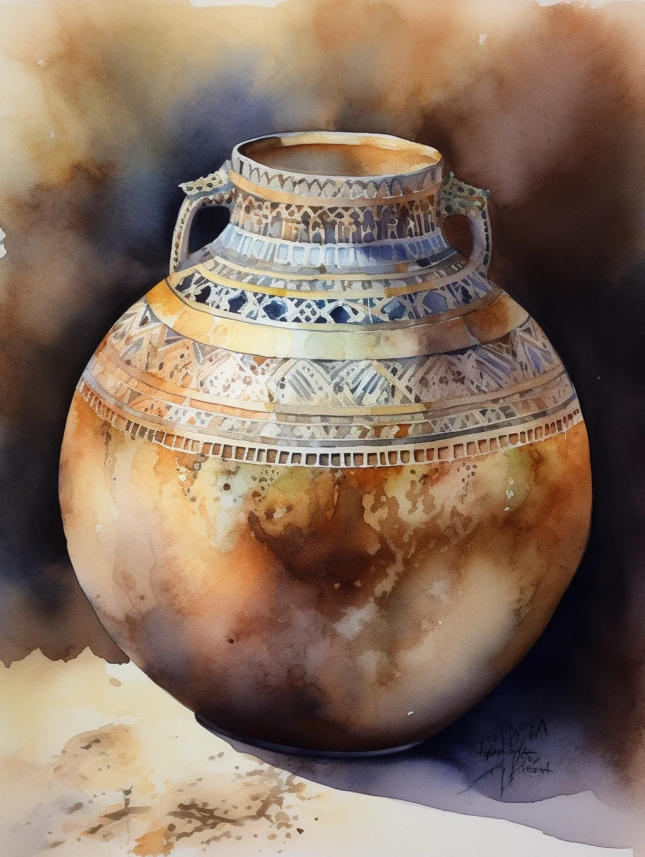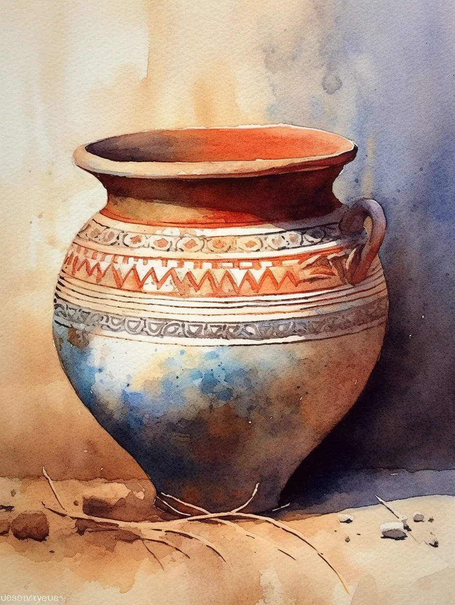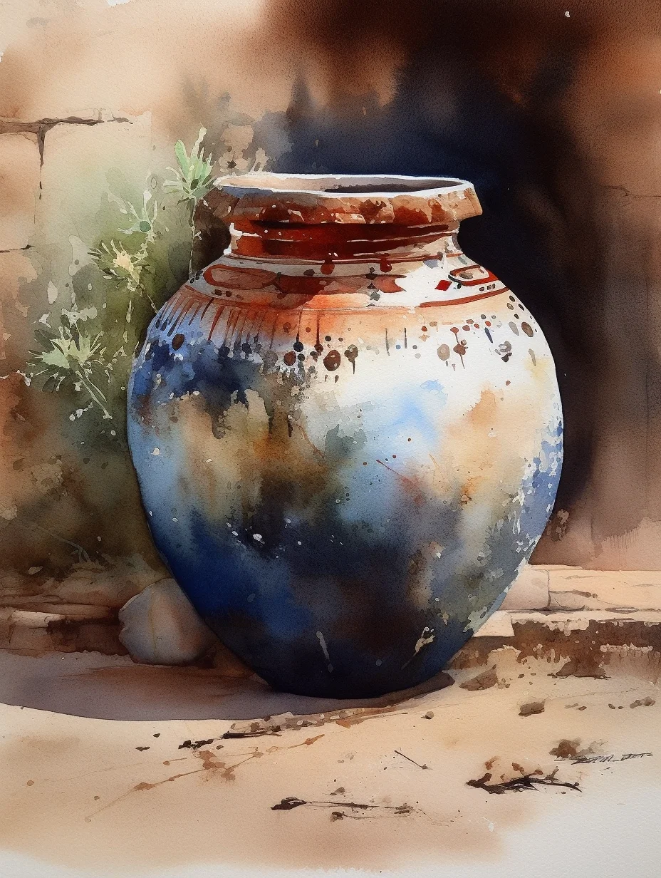 AI水彩:陶罐