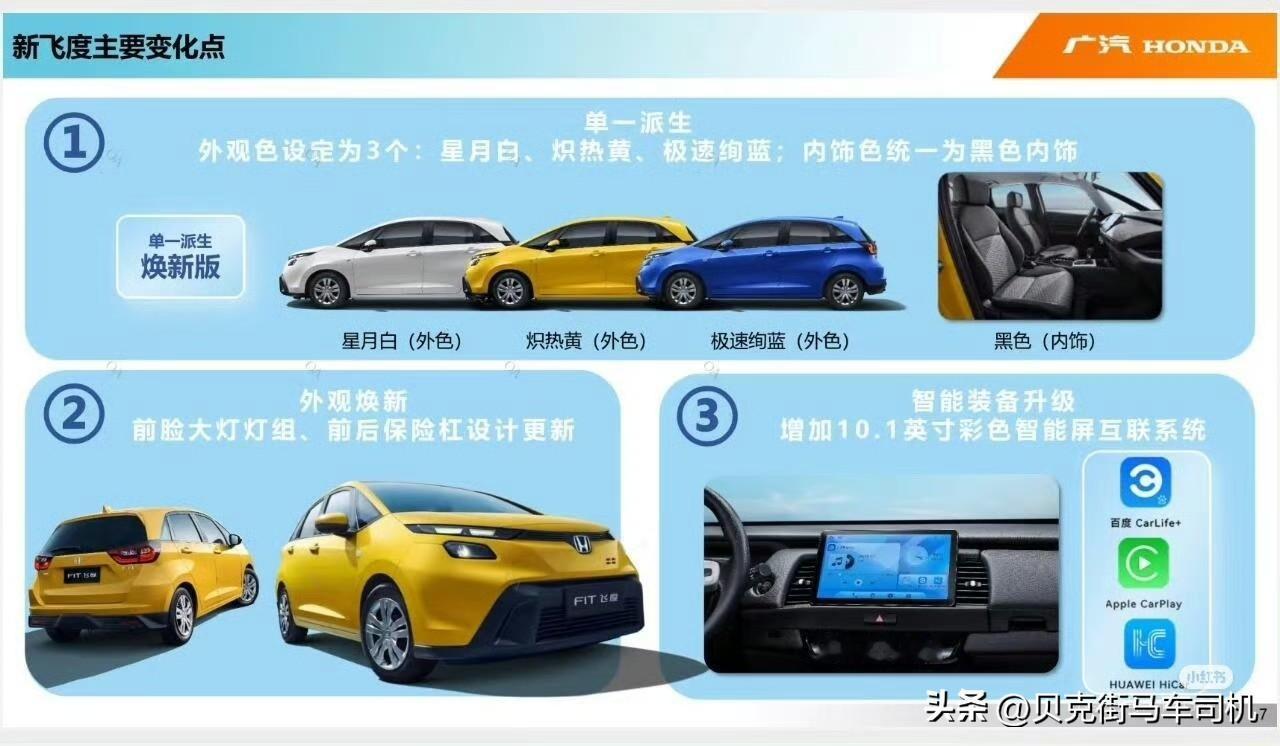新飞度在路上必定回头率拉满,一口价63800元,限量3000台。 暂时全国只有几百个懂车的人,已经订出去几百台,真的是老车有价,情怀无价。 配置是开窍了:标配收音机+喇叭+10.1英寸屏幕。 只有三个配色:白色,黄色,蓝色! 织布座椅和老咕噜棒手刹。