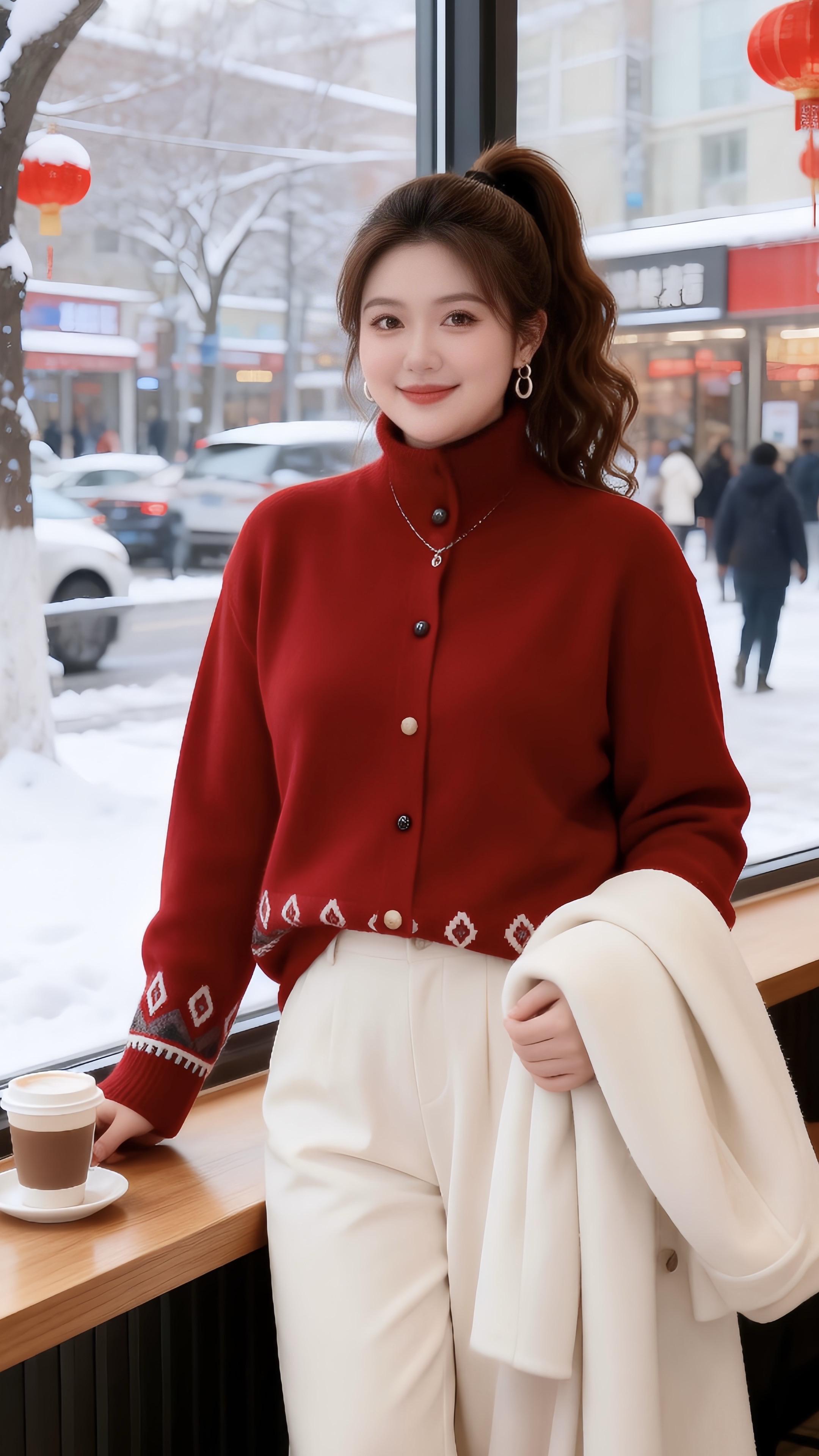 大码穿搭 新年穿搭 红色针织衫 胖妹妹红色系新年穿搭来咯让人眼前一亮的跨年约会穿搭