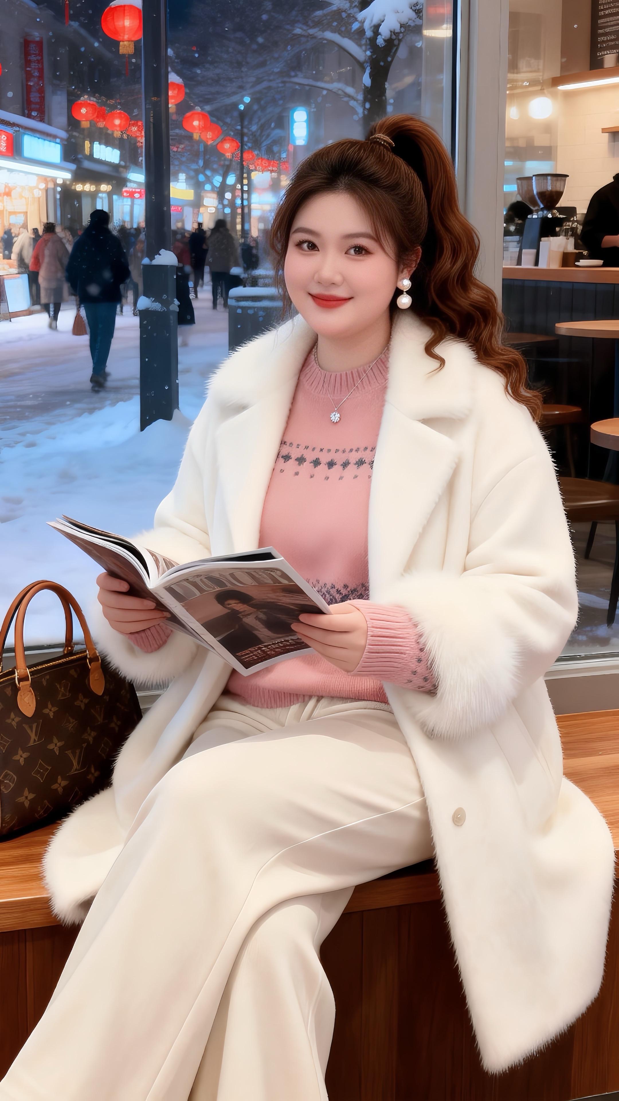米白毛呢大衣搭毛绒围脖,宫墙红墙背景揉出贵气又温婉的冬日氛围感☁️灰色羊绒呢大