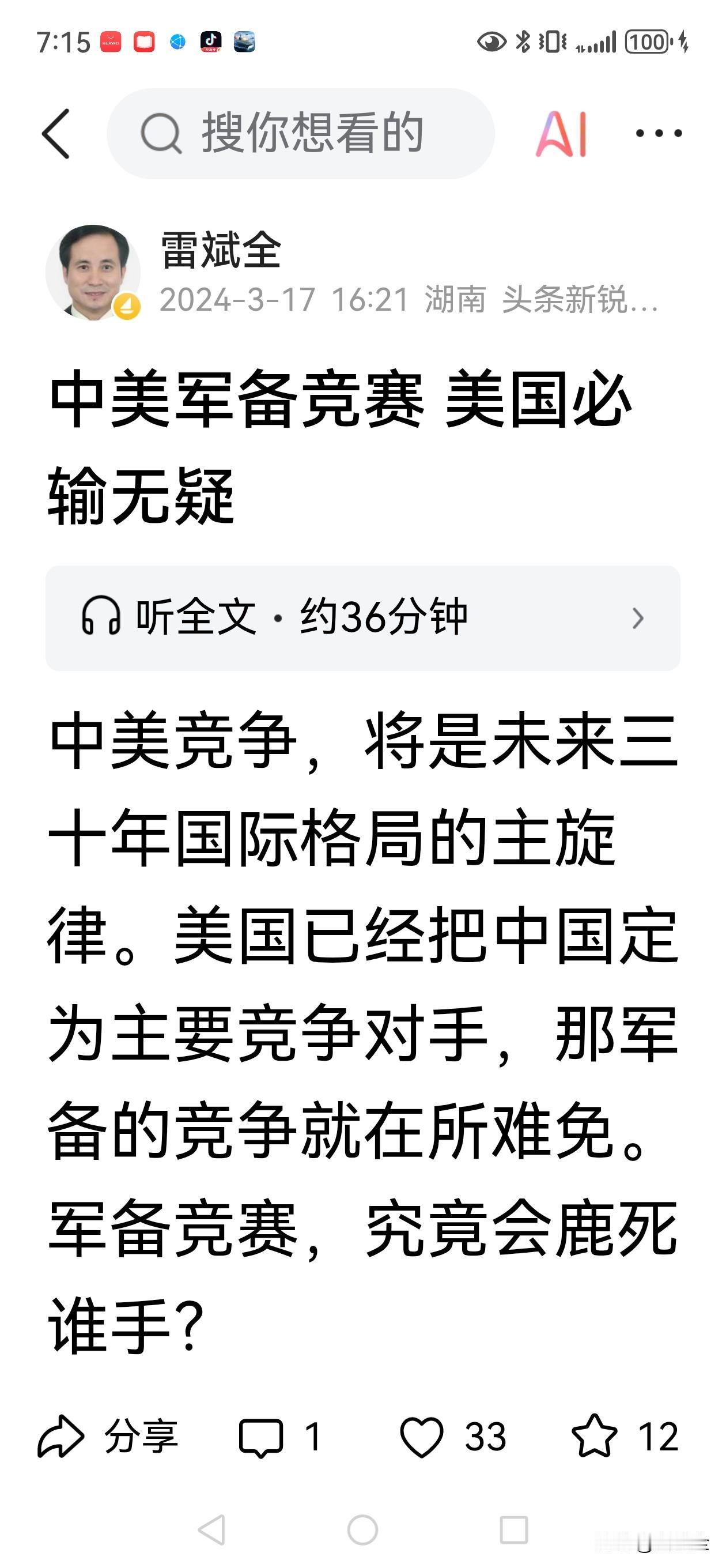 2026,将是中国公开发起ZM军备竞赛元年。“南天门计划”美国接不接招?! 官媒正式发布“南天门计划”,是重大信号。一月十日,央视频道旗下融媒体周刊《砺剑》发布题为《没听错!“南天门计划”正照进现实》的文章。文称,根据设想,中国未来将建造12万吨的空天母舰,名“鸾鸟”,全长242米,可搭载88架“玄天”无人空天战机,还有配套的“白帝”太空战机和战术机甲。这是一小时打遍全球的对地内地外的综合性防御作战体系。 “南天门计划”原来是航空主题科幻IP,由中国准官方机构几年前在“珠海航展”上发布,引发长时期热烈讨论,这回算是半落地了! 这是中国向美国及全世界的重要信号,JB竞赛由此拉开大幕。中国,已先出手,美国,你跟不跟? 关于“中美军备竞赛”,敝人去年有两个长篇,对发起军备竞赛的必要性、战略价值、中美态势有深入分析。亲们似可一观! 亲们莫急,慢慢看戏。 中美较劲,台归可期!
