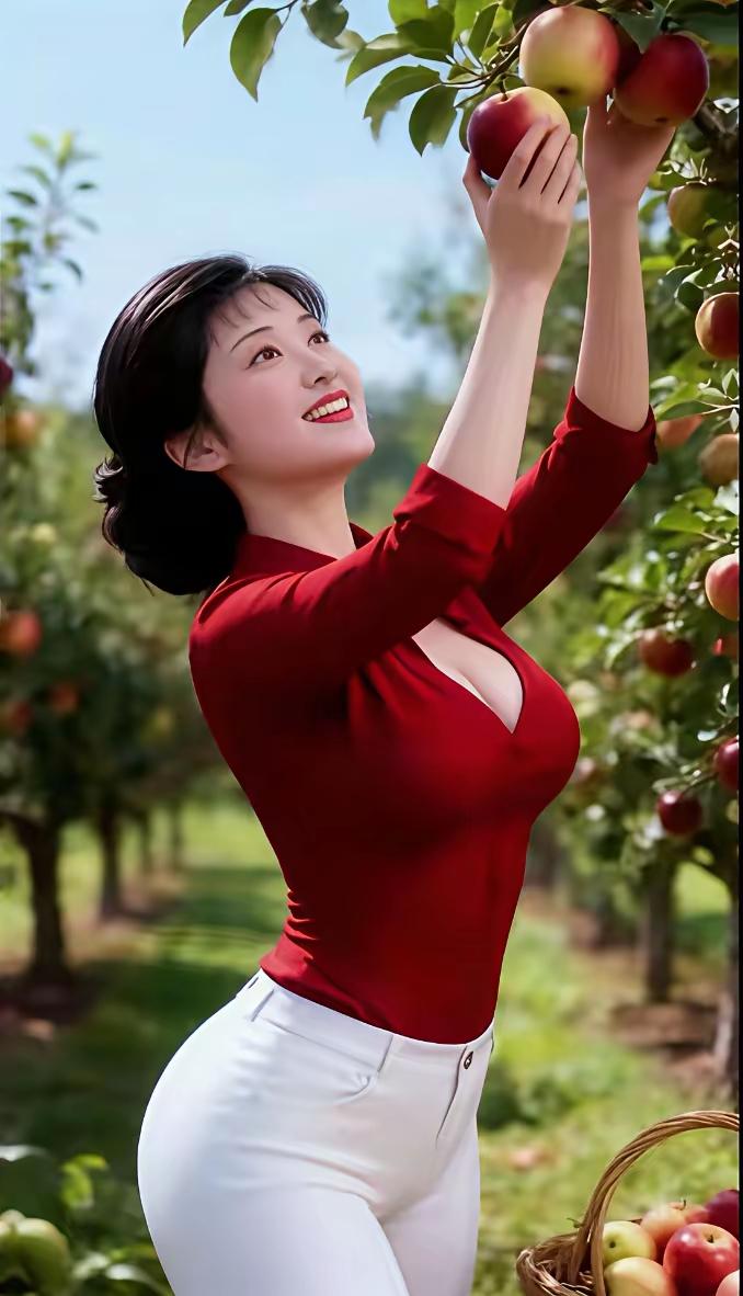 天净沙·秋园摘果 红衫美女秋光, 白裤风露清凉。 纤指红果韵长。 欢声盈巷, 满园香气流芳。