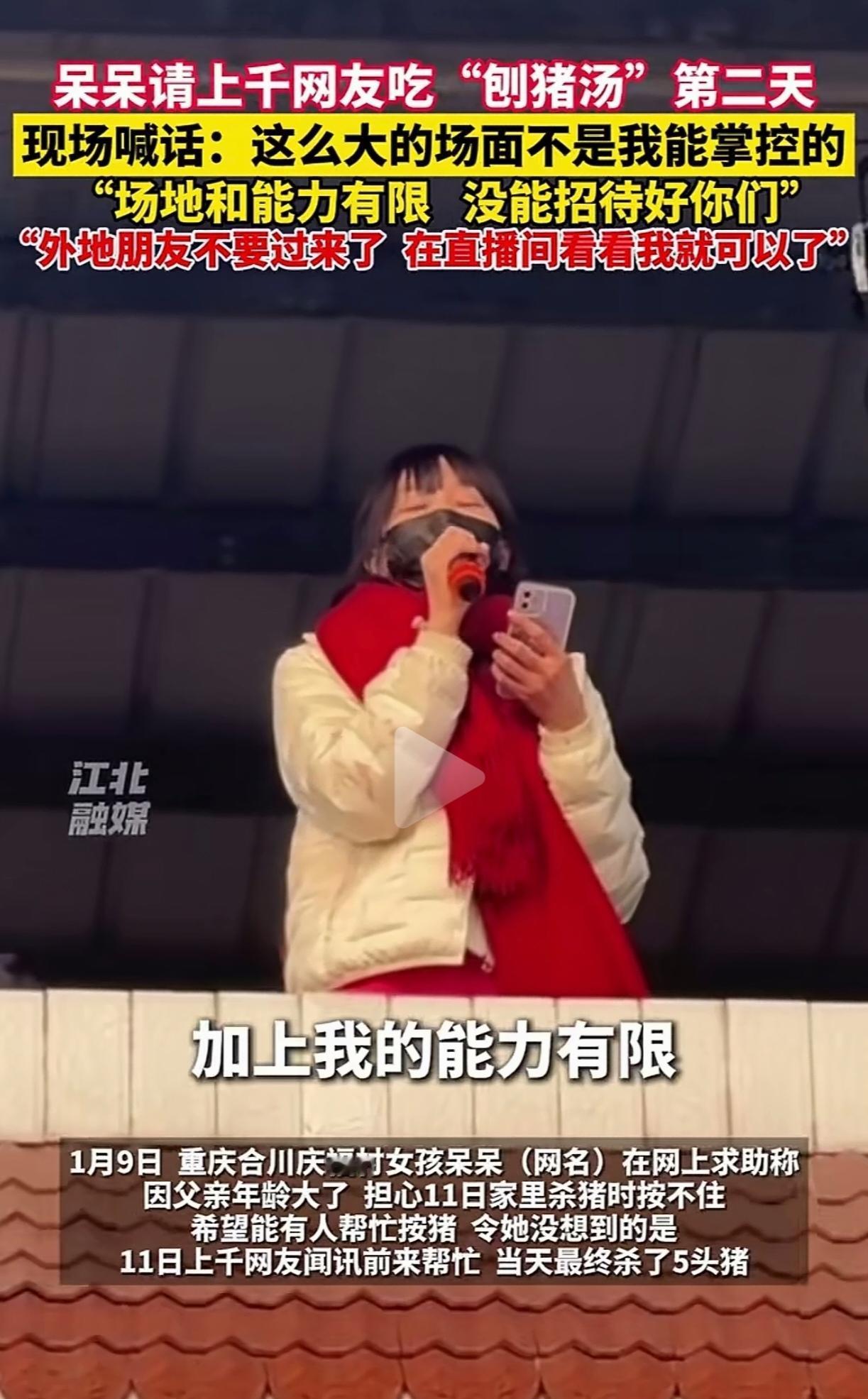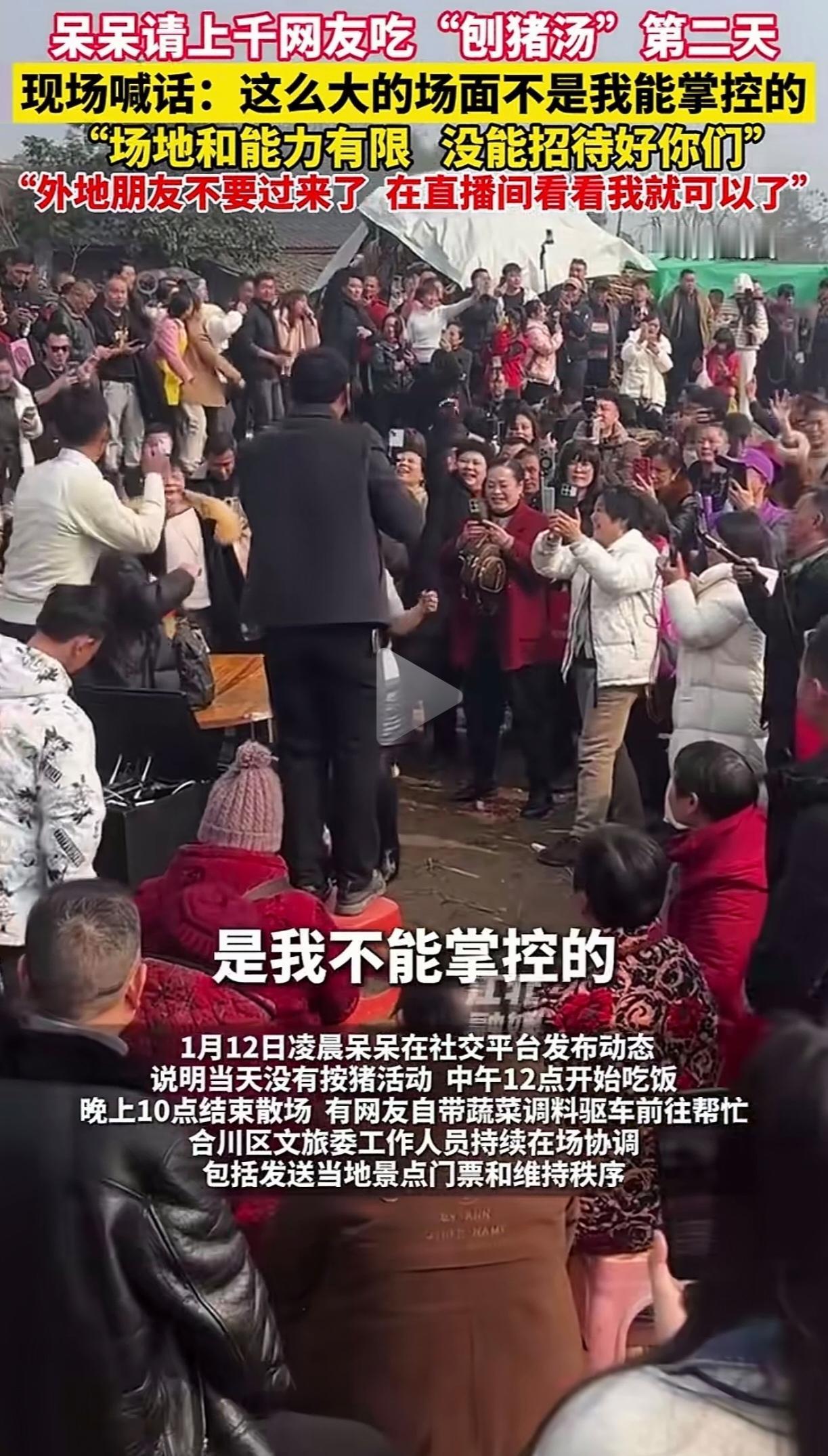 建议重庆为旅行动起来,不要让呆呆一个人顶在前面,合川区文旅能不能把这破天的流量接住? 呆呆家门口,毕竟场地小,人员多,她一个人是接不住这破天的流量的。 建议合川区文旅应该将这破天的流量引到一个宽敞的地方,建成美食一条街:特色菜-刨猪汤,每年的1月11日开始。成一个什么杀猪节?一直春节前结束,专门卖当地的土特产。特别是自己家养的猪。成为特色一条街。吃住玩一条龙,这样就不用呆呆遭罪了。 能带动当地的农民收入,增加旅游收入。 不知道建议合不合理?