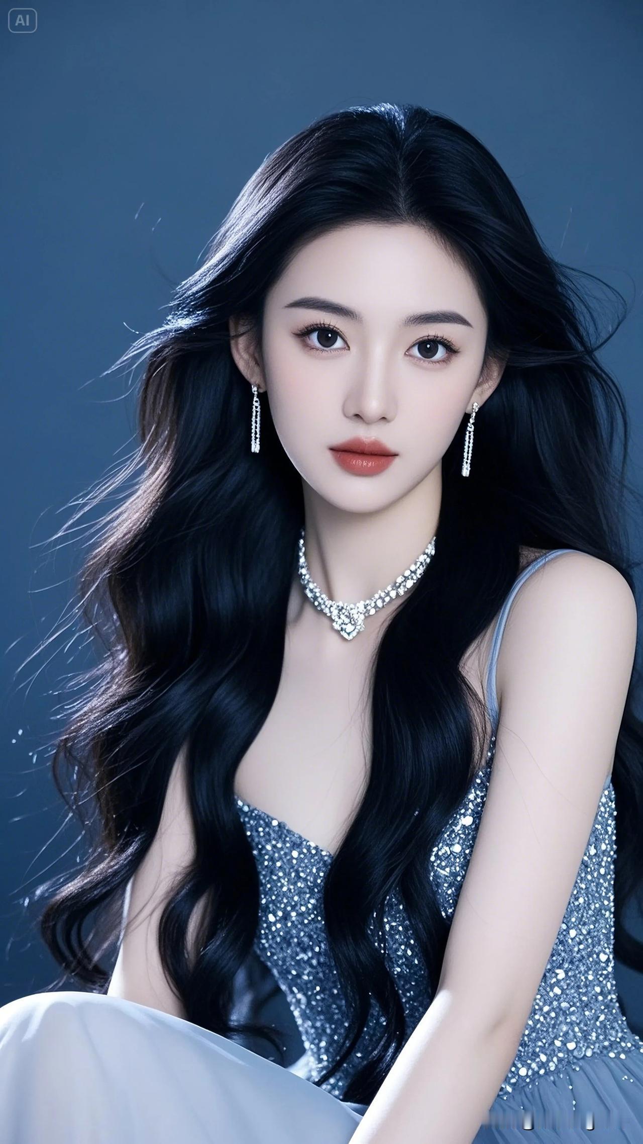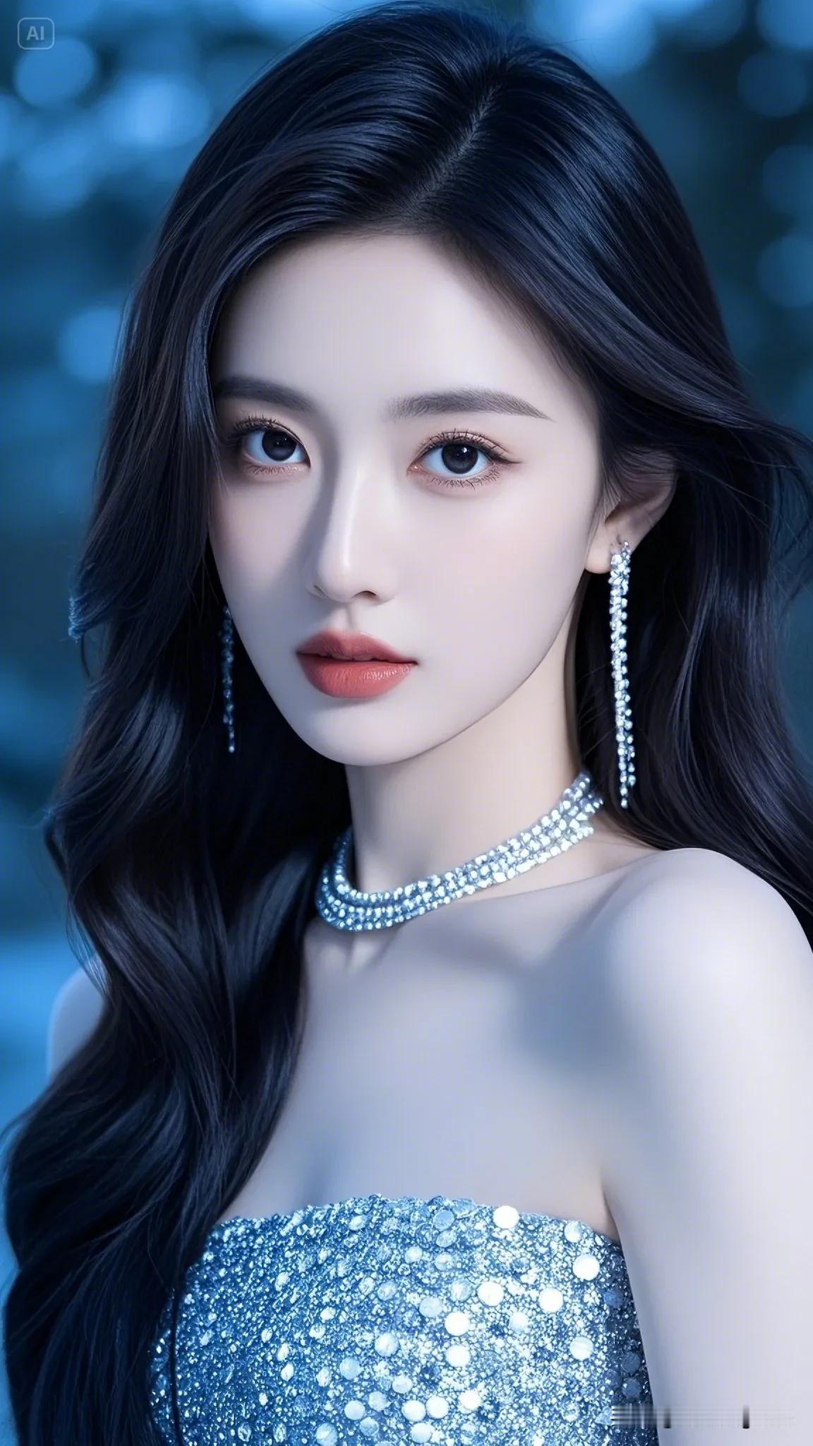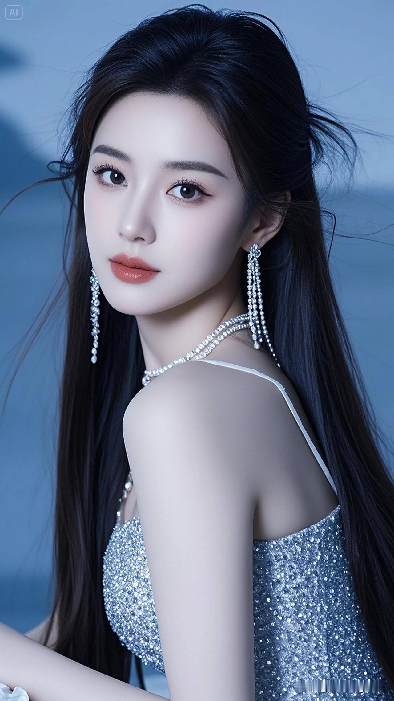 她静静地仰望着,仿佛被星空吸引,那双眼睛充满了对未知的好奇。 温柔大眼睛女孩 眼