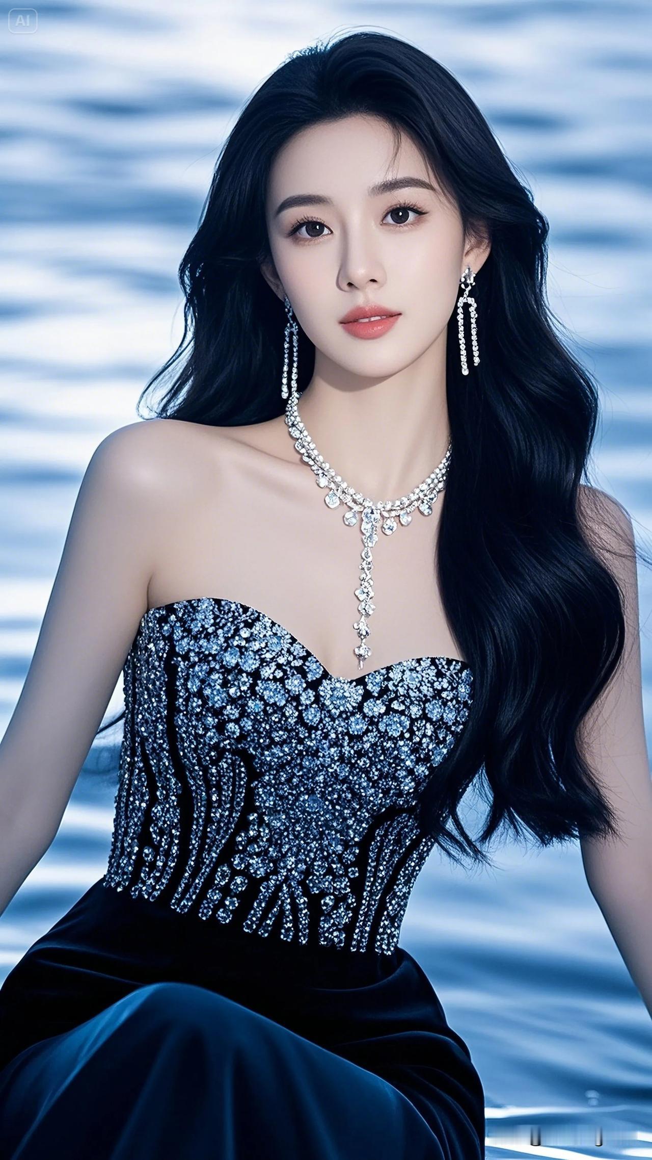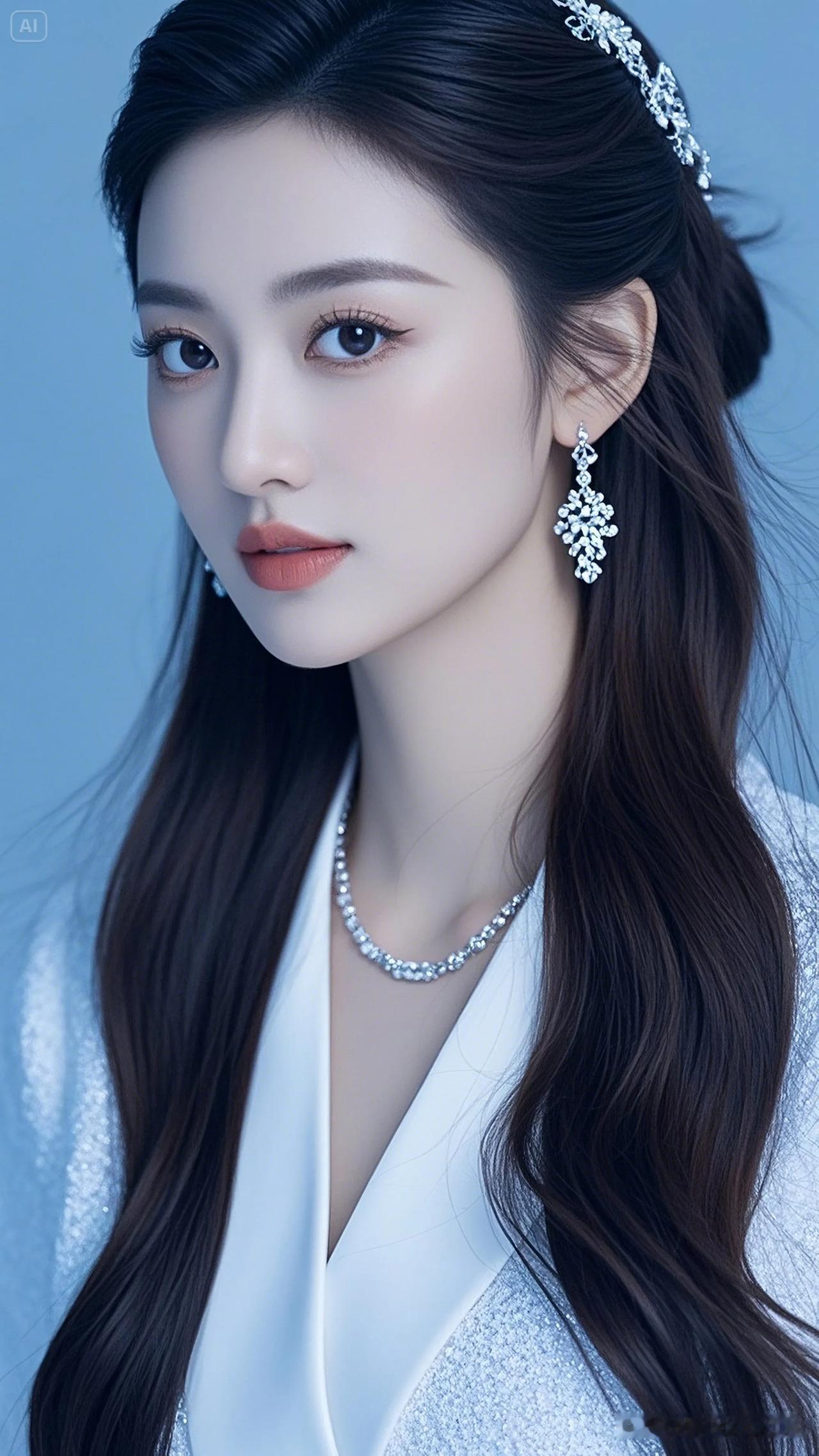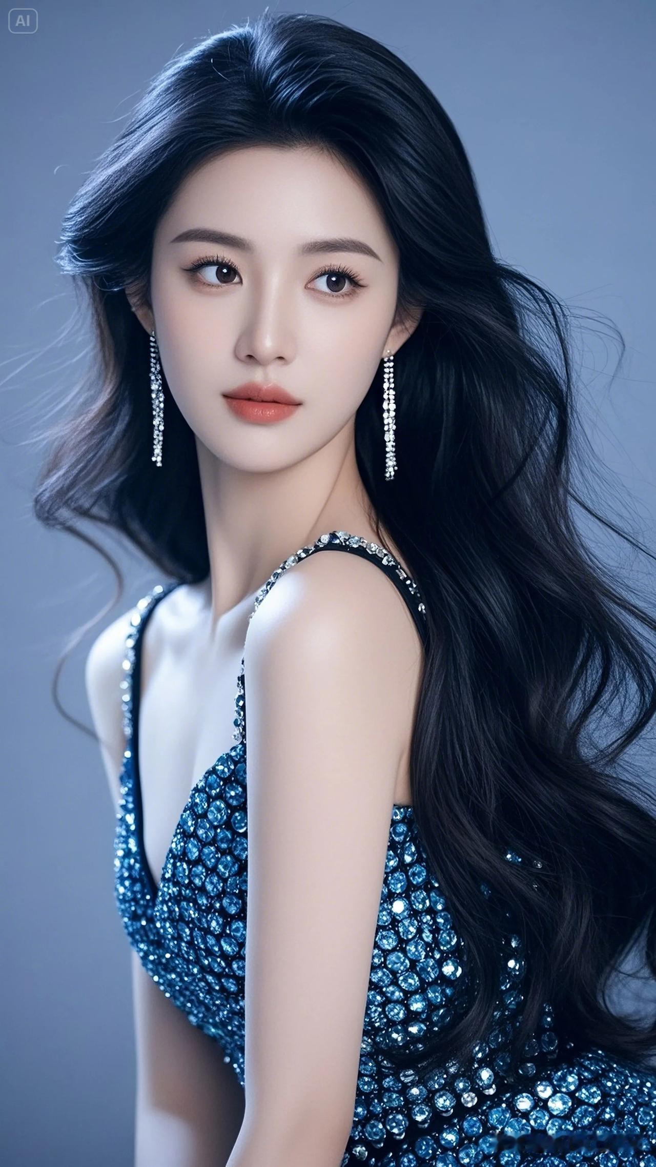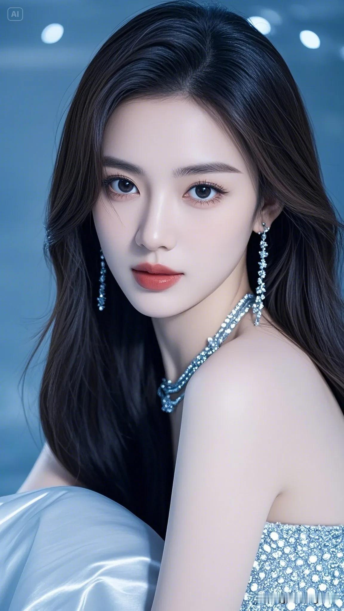 她静静地仰望着,仿佛被星空吸引,那双眼睛充满了对未知的好奇。 温柔大眼睛女孩 眼