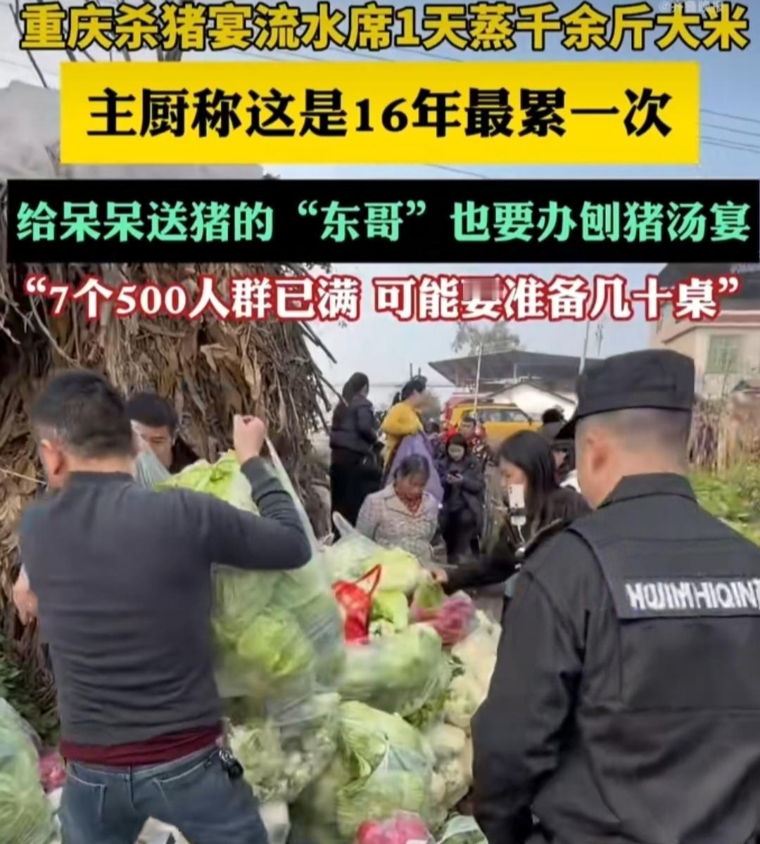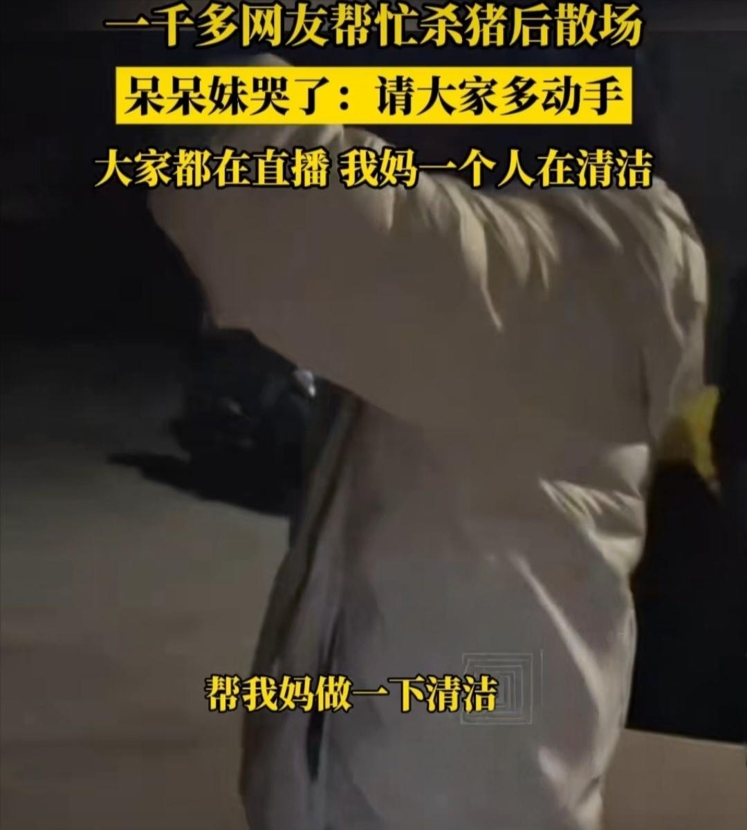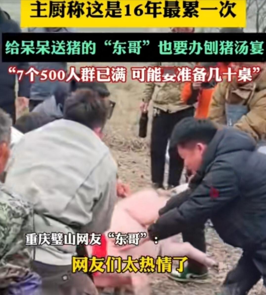 重庆女孩喊网友帮杀猪,结果办出千人流水席,一天蒸千余斤大米! 重庆合川的女孩呆呆火了!就因为在家要杀猪,随口在网上喊了句“来帮忙就管刨猪汤”,没想到上千名网友驱车赶来,直接把场面搞成了大型流水席,热闹得比过年还夸张。 这场杀猪宴的主厨蒋小燕,做了16年坝坝宴,直呼这是她最累的一次,从早上7点忙到晚上7点,光大米就蒸了1000多斤,油用了六七百斤,菜和调料更是装了好几皮卡车,不算人工成本就超10万,几头猪、几百斤鸡鸭鱼很快就被吃光了。 更有意思的是,给呆呆送猪的璧山“东哥”,看这阵仗也打算在当地办刨猪汤宴席,结果几千人报名,7个500人的群都满了,文旅部门还专门和他开会商量活动安排。 而呆呆后来哭着请求网友帮忙打扫卫生的样子也让人心疼,她说大家都忙着直播,只有妈妈一个人收拾。这场因一句随口的邀请引发的热闹,既透着浓浓的年味,也藏着普通人的温暖与无奈。呆呆 网红 网络 直播 重庆 合川杀年猪 合川杀猪 合川杀猪宴 合川年猪 重庆杀猪 合川杀猪晏