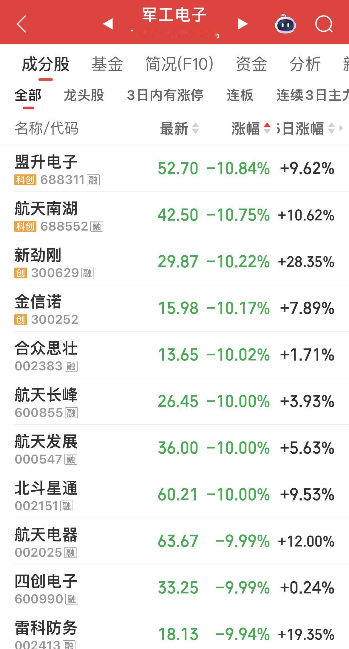 军工电子也开始绿油油了。 板块下挫超5%! 炒短线,你搞不过量化,人家有对冲工具,下跌仍然可以赚钱的!