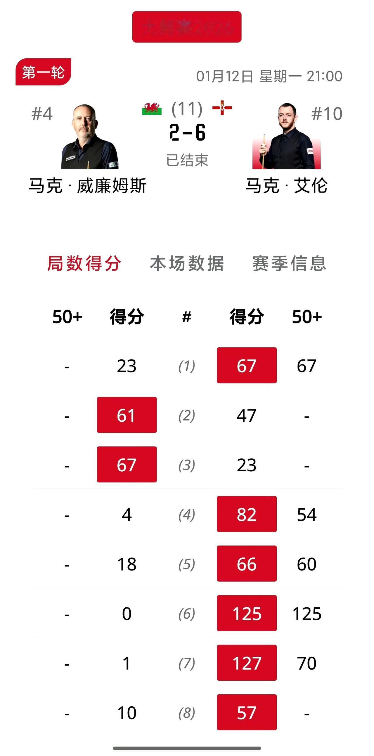 赵心童大胜威尔逊晋级八强!今年的大师赛中国球员不得了啊,出战的三位球员吴宜泽,肖国栋和赵心童全部取得胜利,战胜三位英格兰本土大满贯球员,让人感到意外,豪取四万英镑奖金,接下来压力来到了丁俊晖和斯佳辉身上,两人面对世界第一和世界第二,能否全身而退呢[鼓掌]