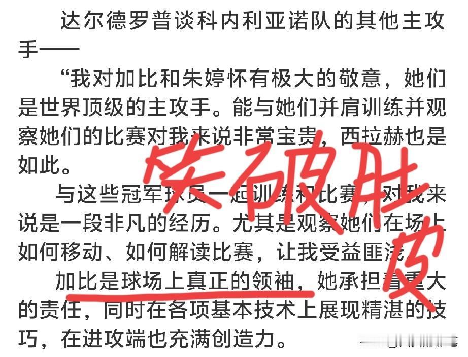 加比是科内利亚诺女排领袖,要笑破肚皮了[呲牙] 朱婷的队友达尔德罗晋,认为科内俱