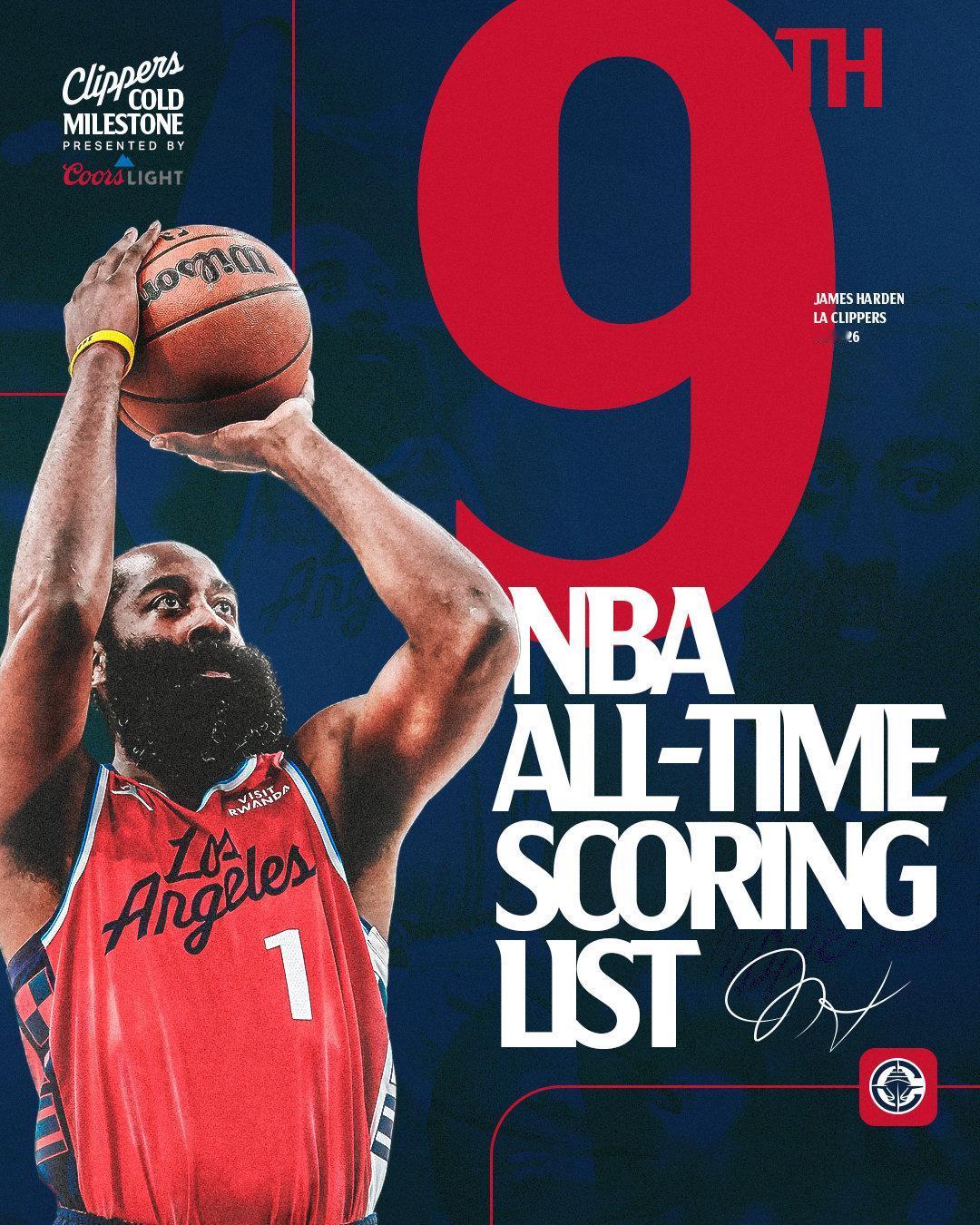 恭喜哈登超越奥尼尔,升至 NBA 历史得分榜第9位! 本来还担心哈登今天会“里程悲”呢,毕竟上半场状态不好,但好在小卡第三节开无双了,顶住了黄蜂的进攻波,然后第四节哈登也发力了,队里的“科比”和“乔丹”也站出来了,就连泰伦卢也开窍了,决胜时刻知道要DNP祖巴茨了……