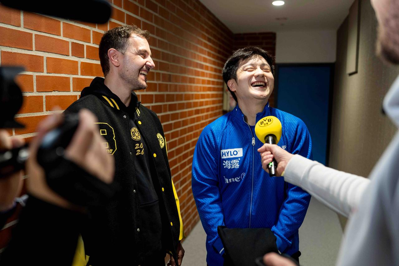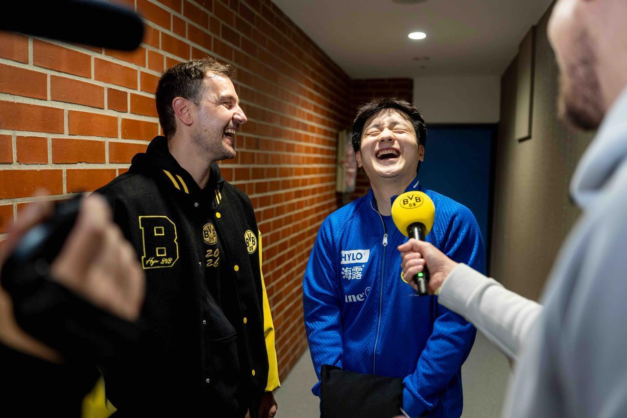 正常来说樊振东是小蓝衣,是不能进来接受采访的,原则被打破了,因为他是东! 两个人一起进入多特蒙德更衣室,这是多相信和敬佩,樊振东还大笑,真的很纯真无邪,这才是我们的榜样,在外交流乒乓球文化,真的让人很欣慰,他有真的在好好照顾自己,开心就是最好的安排!