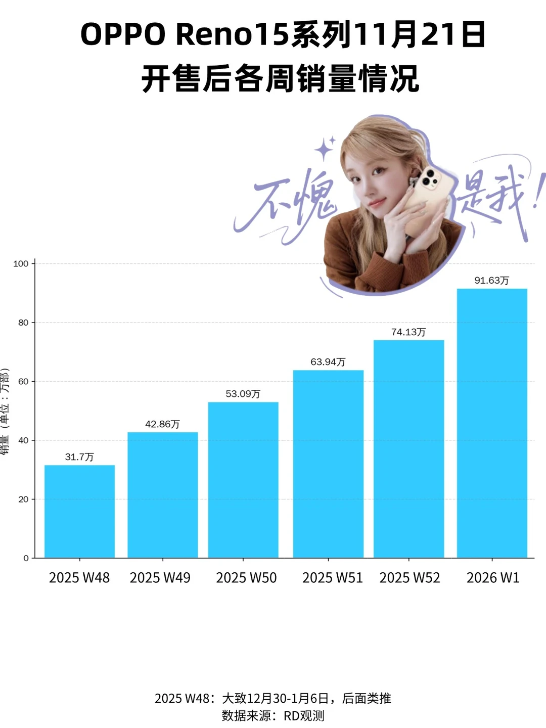 网上看到一个RD博主统计的数据,没想到OPPO Reno15系列卖了91万多部了,下一周就要破百万销量了,太火了吧,宋雨琦带货女王➕Reno产品力,大爆🔥❗️有没有姐妹买了雨琦同款Reno15呢?好不好用?